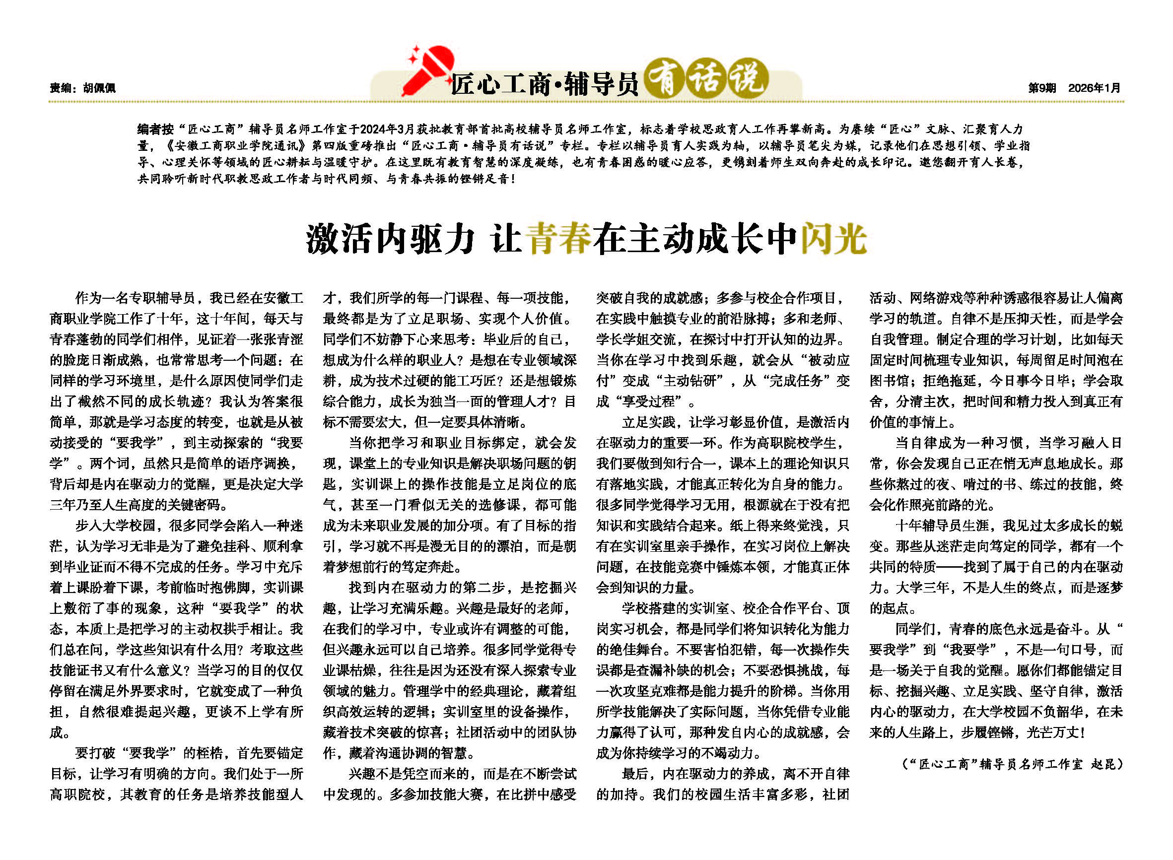 【辅导员有话说】第9期 激活内驱力让青春在主动成长中闪光