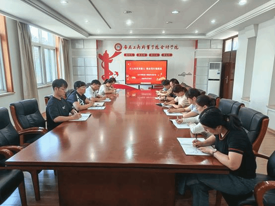 为加强辅导员队伍建设,总结学期工作成效,2025年6月,"匠心工商"辅导员名师工作室主办、会计学院承办的"红心向党育新人 敬业笃行强根基"第十七期辅导员沙龙在明德楼二楼会议室举行。工作室成员、会计学院党总支书记赵艳,党总支副书记李峰及学院专职辅导员参与研讨。