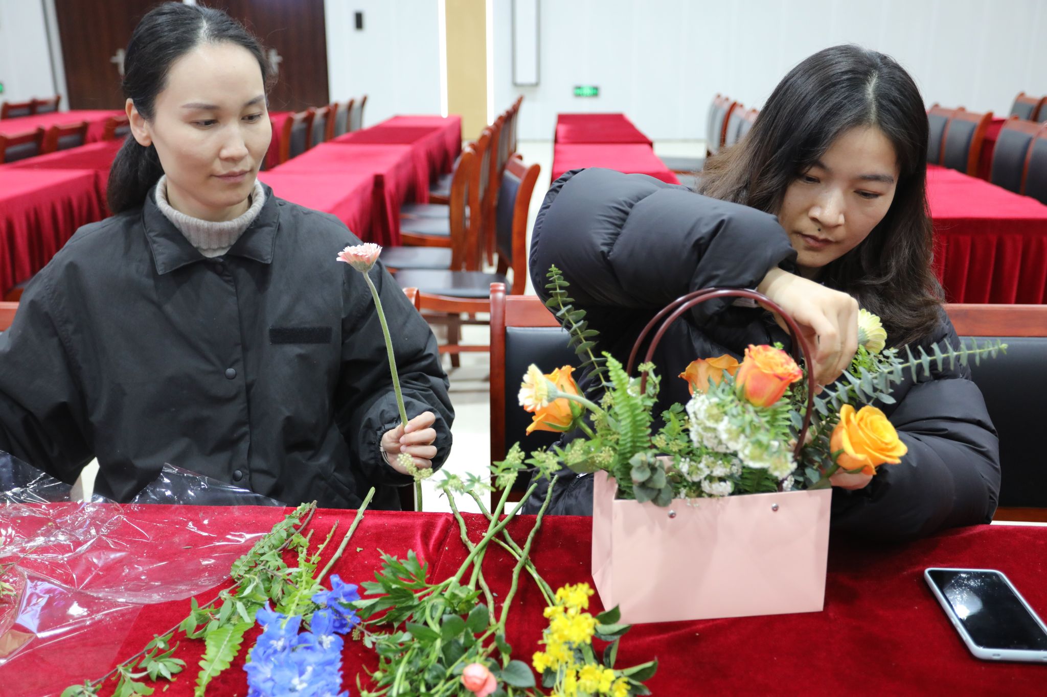 一双双巧手在花叶间穿梭,活动现场欢声笑语,大家互相交流插花心得,分享创作灵感。一篮篮独具匠心,赏心悦目的插花作品逐渐成型,有的热情奔放,有的清新淡雅,有的高贵脱俗,每一件作品都寄托着大家对美好生活的向往和追求。