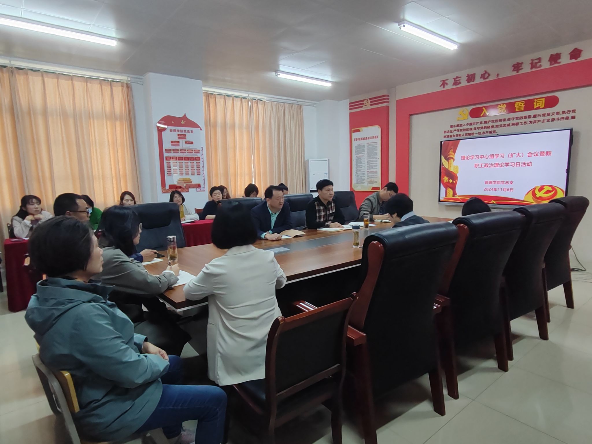 11月6日中午,管理学院召开二级理论学习中心组学习(扩大)会议暨教职工政治理论学习日会议,传达学习习近平总书记考察安徽重要讲话精神,研究部署学院学习贯彻工作。学院党政领导班子成员、全体教师参加学习交流。会议由学院党总支书记曹大友主持。