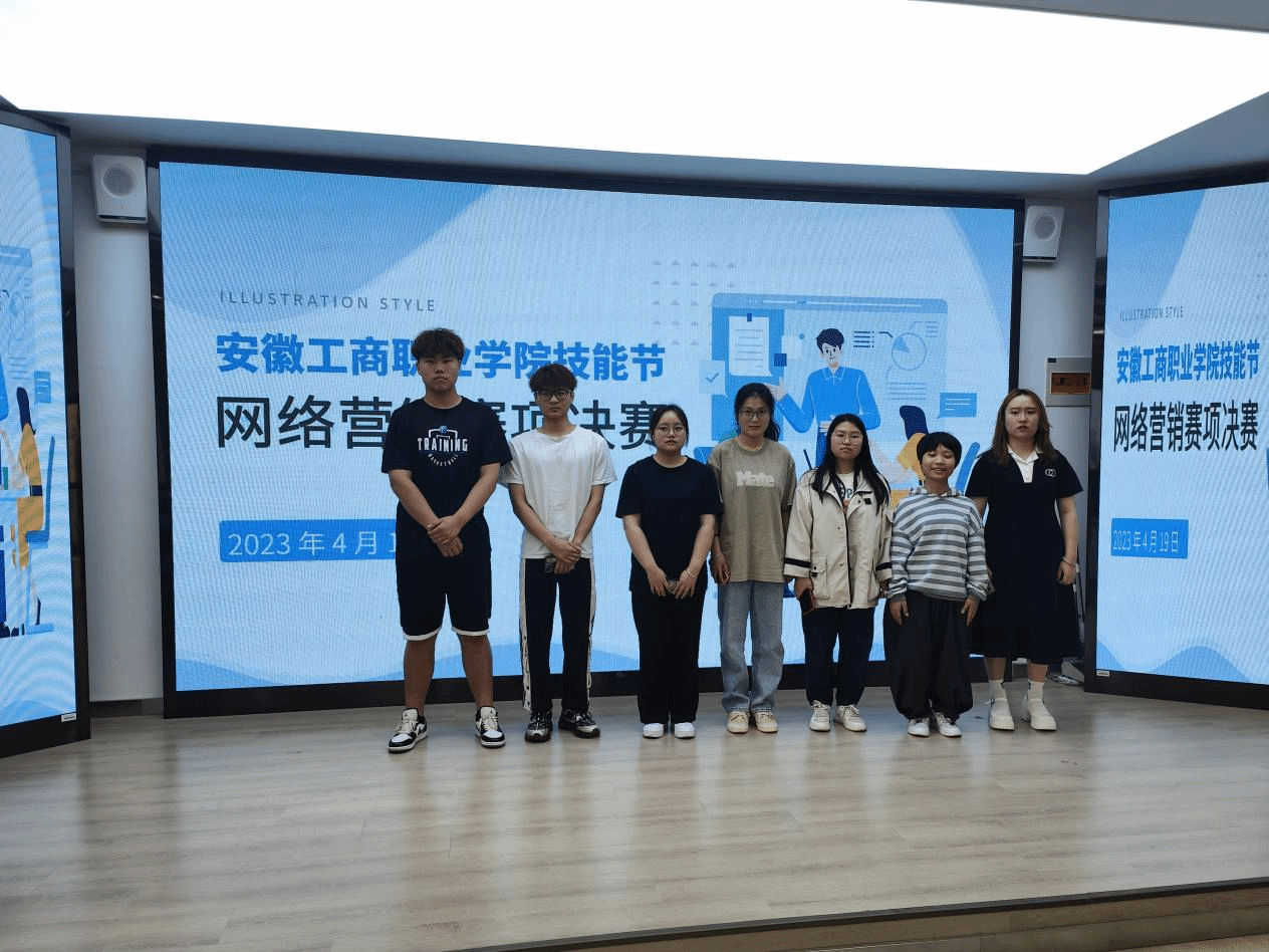 4月19日,安徽工商职业学院2023年技能节网络营销赛项决赛在管理学院306内容运营中心实训室拉开帷幕,2021级、2022级电子商务、网络营销与直播电商、连锁经营与管理专业共22位同学参加了校赛决赛阶段的比拼。学生通过PPT的形式展示了个人制作的H5页面海报和设计的微信公众号。同学们通过平时的专业训练和刻苦练习,展示了各自精心制作的网络营销作品。