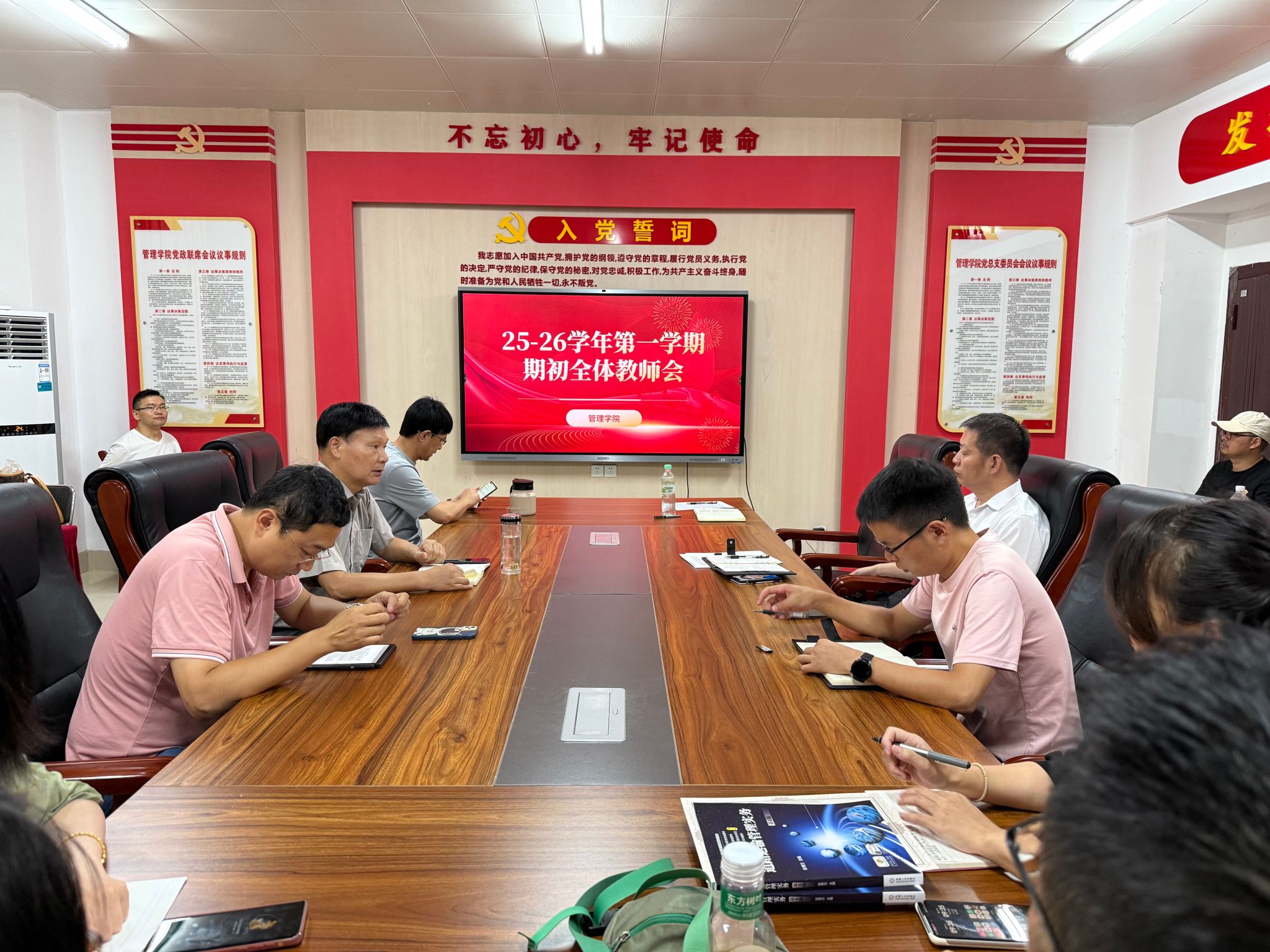 9月5日上午,管理学院在108党员活动室召开新学期全体教职工大会,旨在全面且细致地部署新学期的各项工作,为学院发展注入新动力。会议由学院党总支书记曹大友主持。