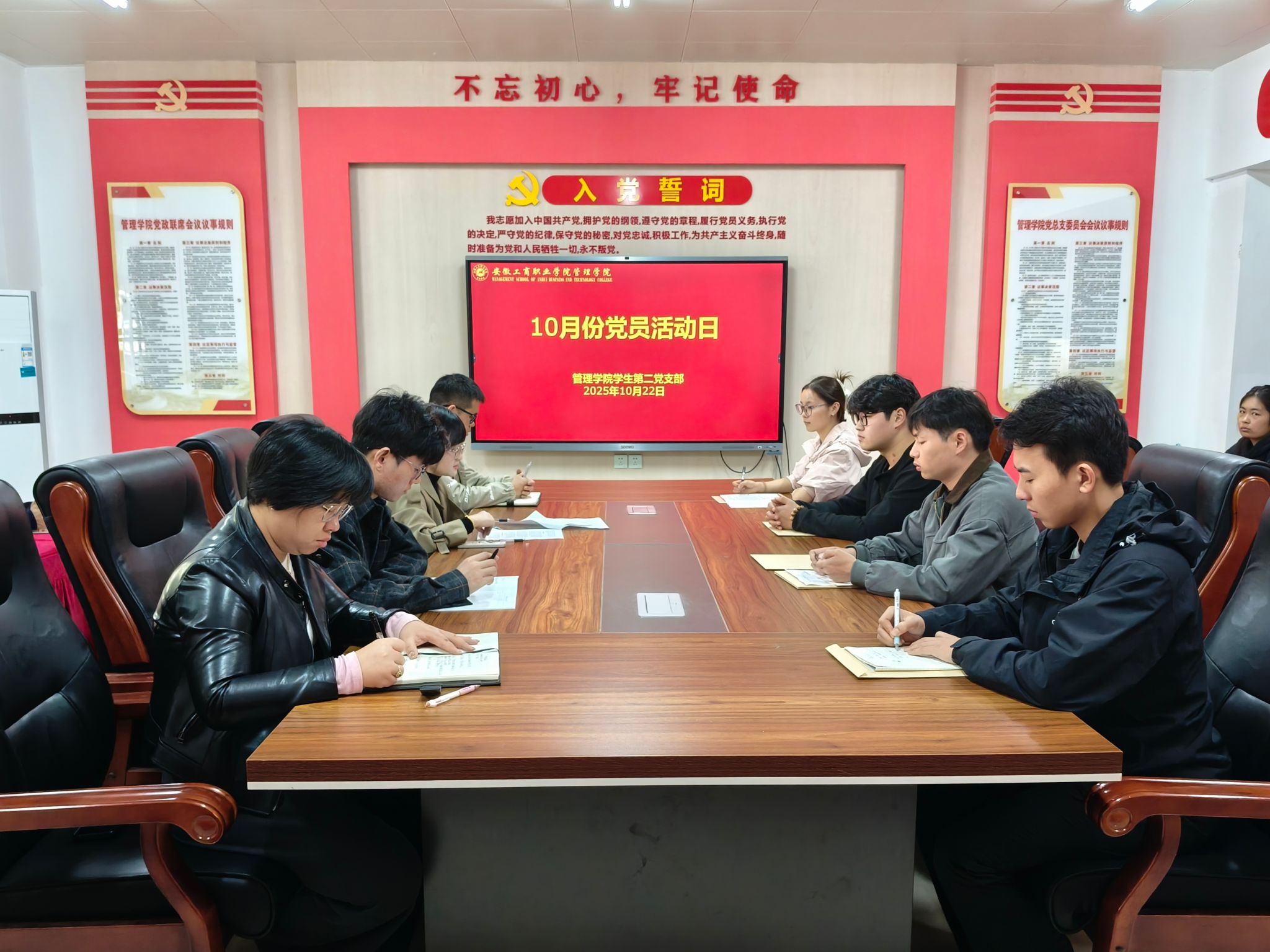10月22日中午,管理学院学生第二党支部开展10月份党员活动日活动,围绕深入学习领会习近平总书记给中国农业大学全体师生重要回信精神、贯彻落实《关于加强和改进新时代师德师风建设的意见》进行学习和交流,并就2025年秋季学期党员发展、入党积极分子培养与考察及先锋志愿队活动进行安排。活动由党支部书记毕筱菁主持,全体师生党员、部分入党积极分子代表参会。