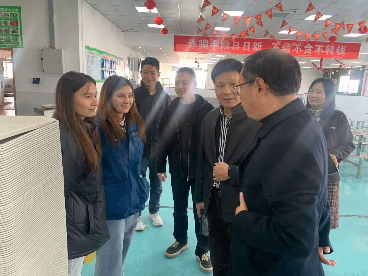 为深入推进产教融合、校企合作,提升人才培养质量与毕业生就业竞争力,扎实开展“访企拓岗”促就业专项行动,2025年11月21日,安徽工商职业学院副院长胡捍东率管理学院党总支书记曹大友、副书记汪锋及辅导员一行四人赴芜湖博康机电股份有限公司开展考察交流,并亲切看望慰问正在企业进行毕业实习的50名新疆籍学生。