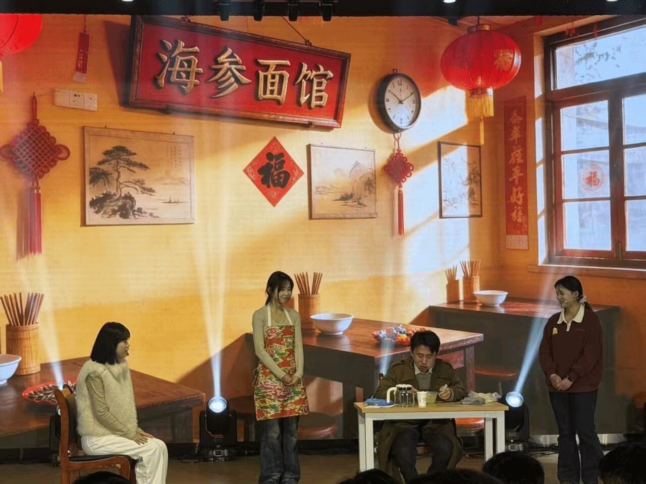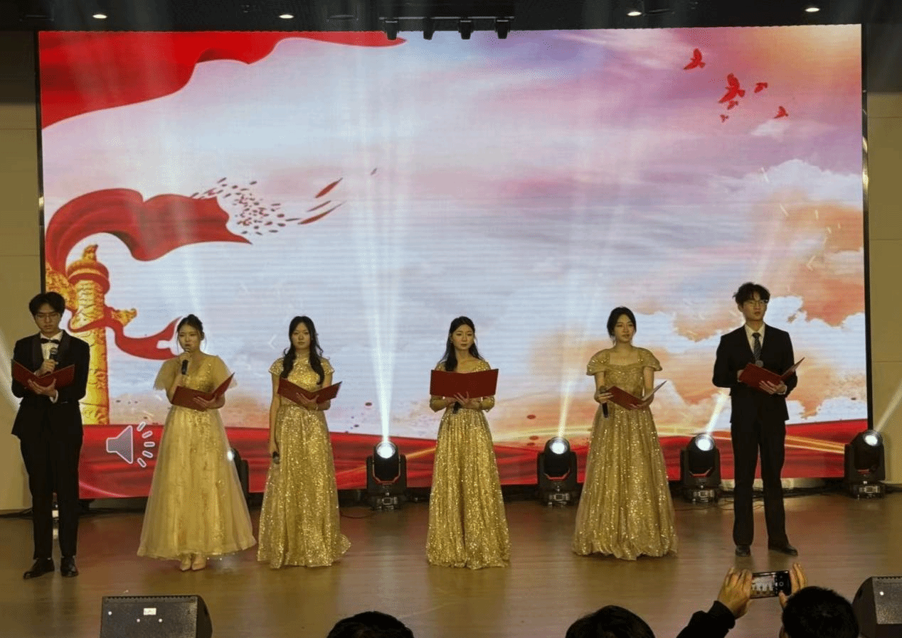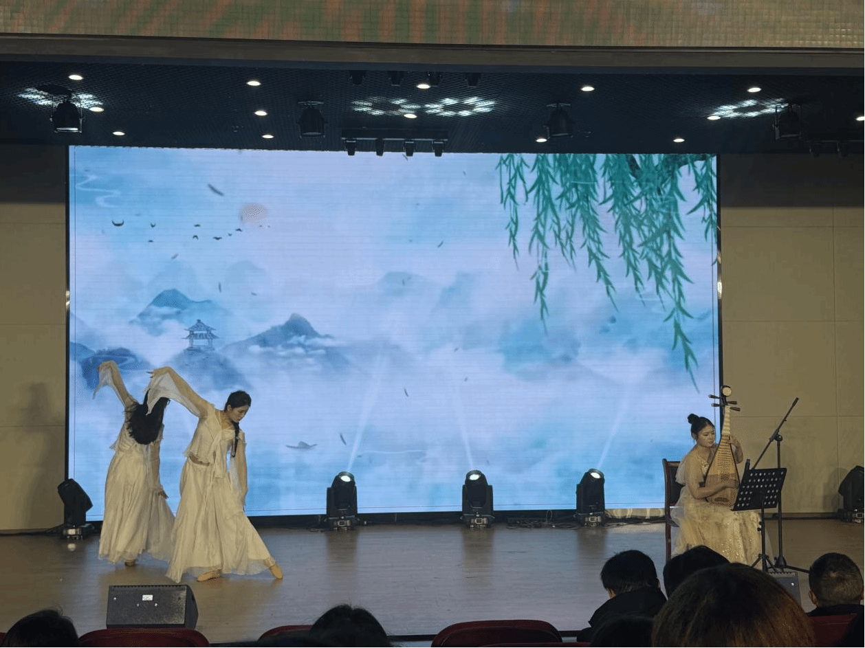 文艺表演环节精彩纷呈,高潮迭起。舞蹈《Fancy》以动感的旋律和灵动的舞姿点燃全场气氛;小品《吃面》取材生活,用幽默诙谐的演绎让现场笑声不断;歌曲《修炼爱情》《唯一》深情婉转,触动人心;舞蹈串烧融合多种风格,酷炫的动作展现青春活力;朗诵《中华颂》《青春中国 奋斗有我》字字铿锵,抒发了对中华传统文化的热爱与新时代青年的责任担当;情景剧《反诈联盟》《觉醒年代》分别以贴近生活的反诈宣传和波澜壮阔的历史场景,传递正能量,引发全场共鸣;乐器演奏与舞蹈结合的《琵琶语》、古典舞《又见青白》将古典雅致与灵动韵律完美融合,带来震撼心灵的视听体验;乐队表演《没有理想的人不伤心》以摇滚的激情唱出对理想的执着坚守,点燃全场热情。