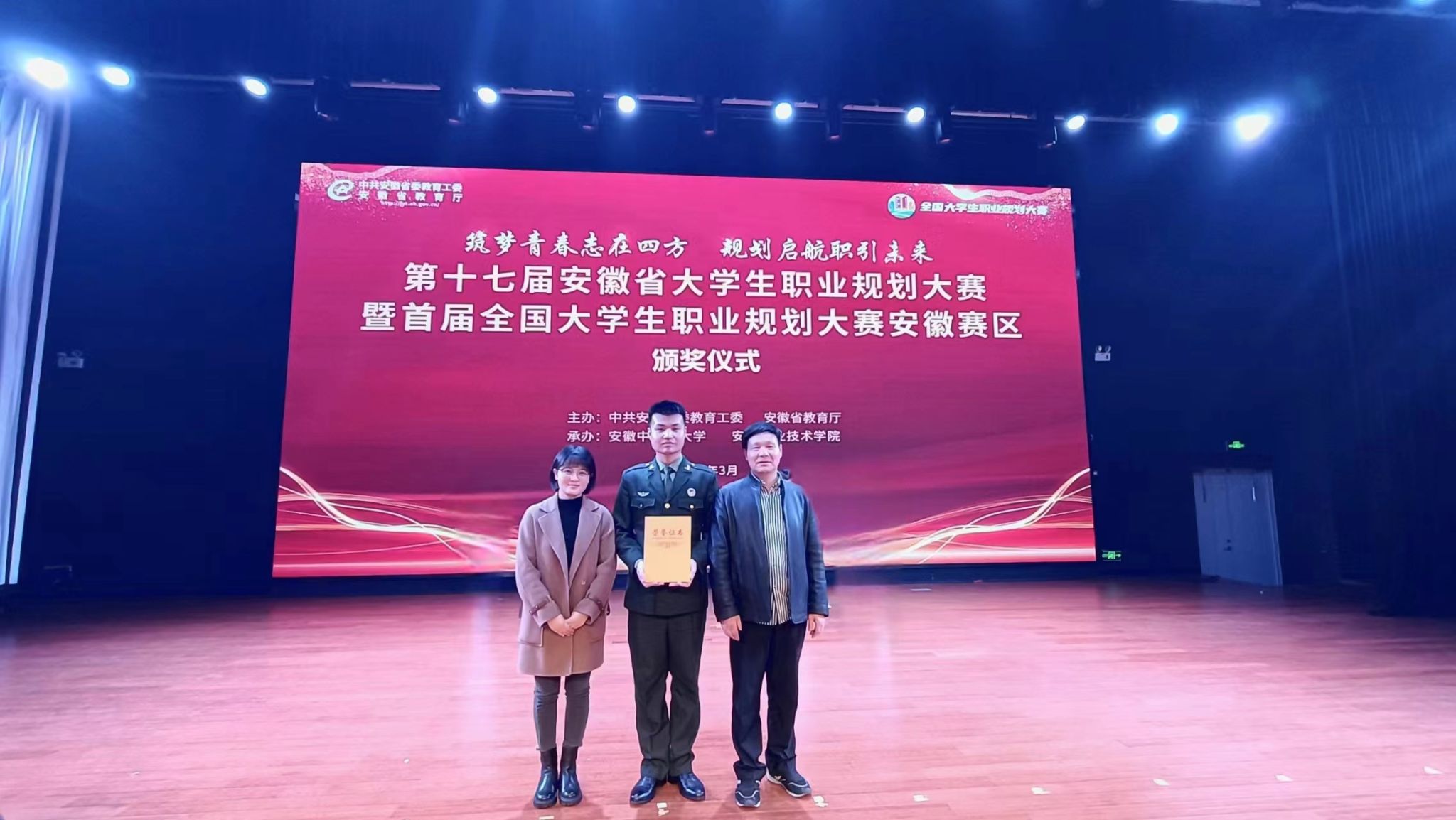 3月13日至 3月14日,由安徽省委教育工委、省教育厅主办的第十七届安徽省大学生职业规划设计大赛暨首届全国大学生职业规划大赛安徽赛区总决赛在安徽中医药大学、安徽职业技术学院顺利举行。经过两天激烈角逐,管理学院22市场营销4班学生刘志强在学院党总支书记曹大友、教师毕筱菁的精心指导下,凭借优异的表现脱颖而出,以95.480的高分斩获成长赛道(职教组)一等奖,有力展现了安工商学子自强不息、拼搏担当的精神风貌。