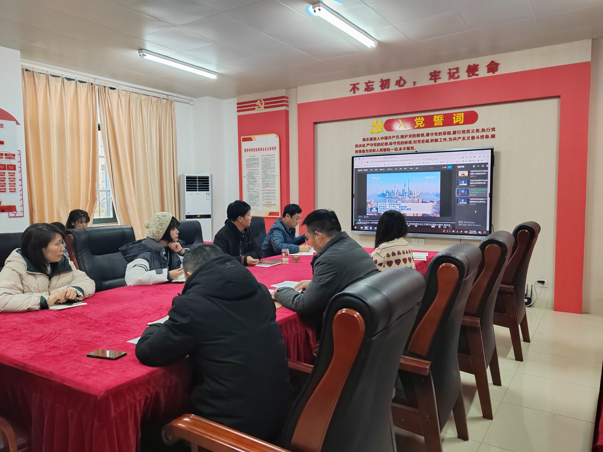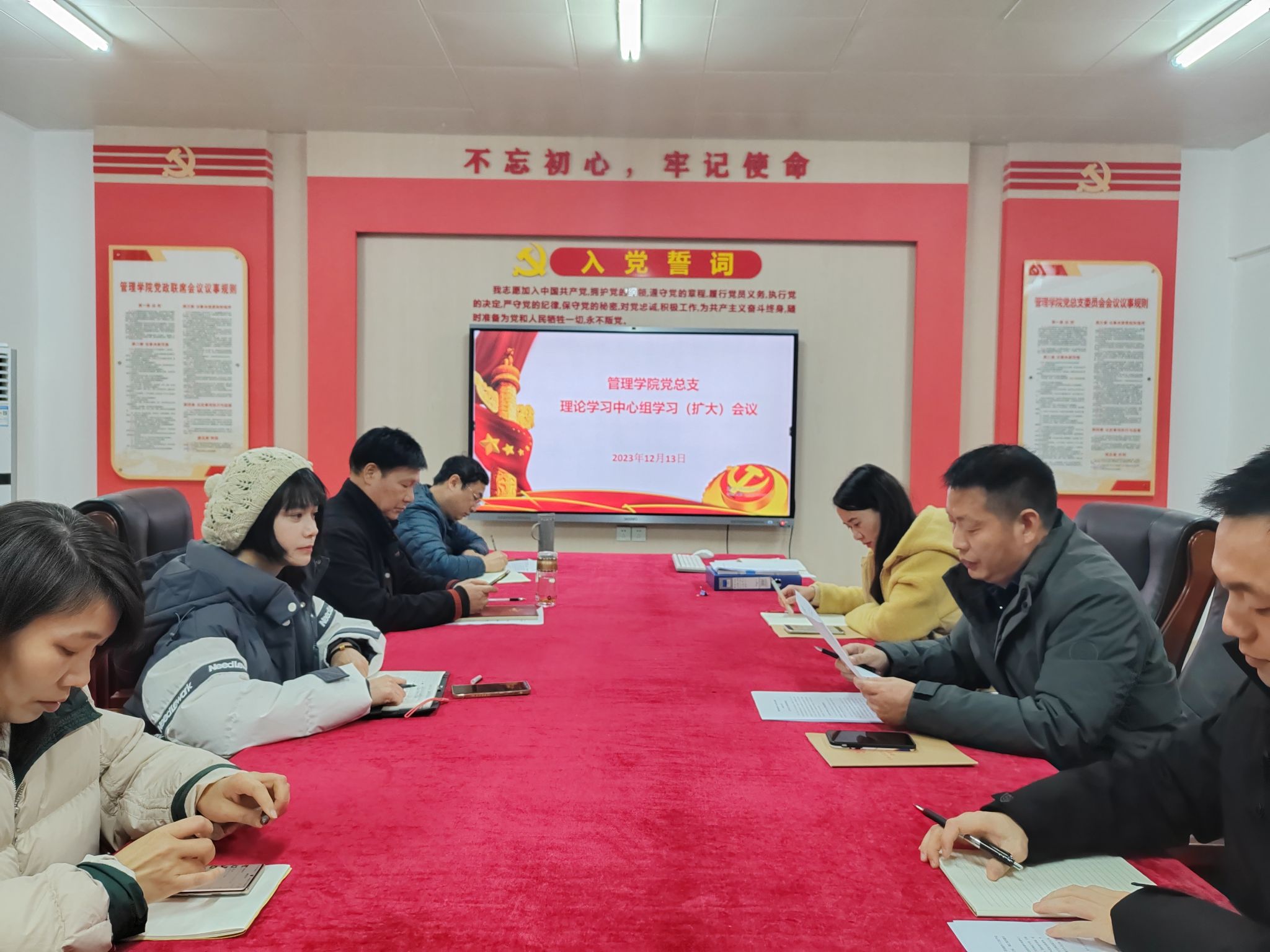 按照学校党委关于二级学院理论学习中心组学习工作安排,12月13日中午,管理学院党总支在党员活动室召开理论学习中心组学习(扩大)会议,跟进学习习近平总书记最新重要讲话精神,专题学习习近平总书记有关教育及青年工作重要论述综述,并围绕专题学习开展交流发言。学院党总支副书记汪锋主持会议,学院党总支书记曹大友及全体教师参加会议。
