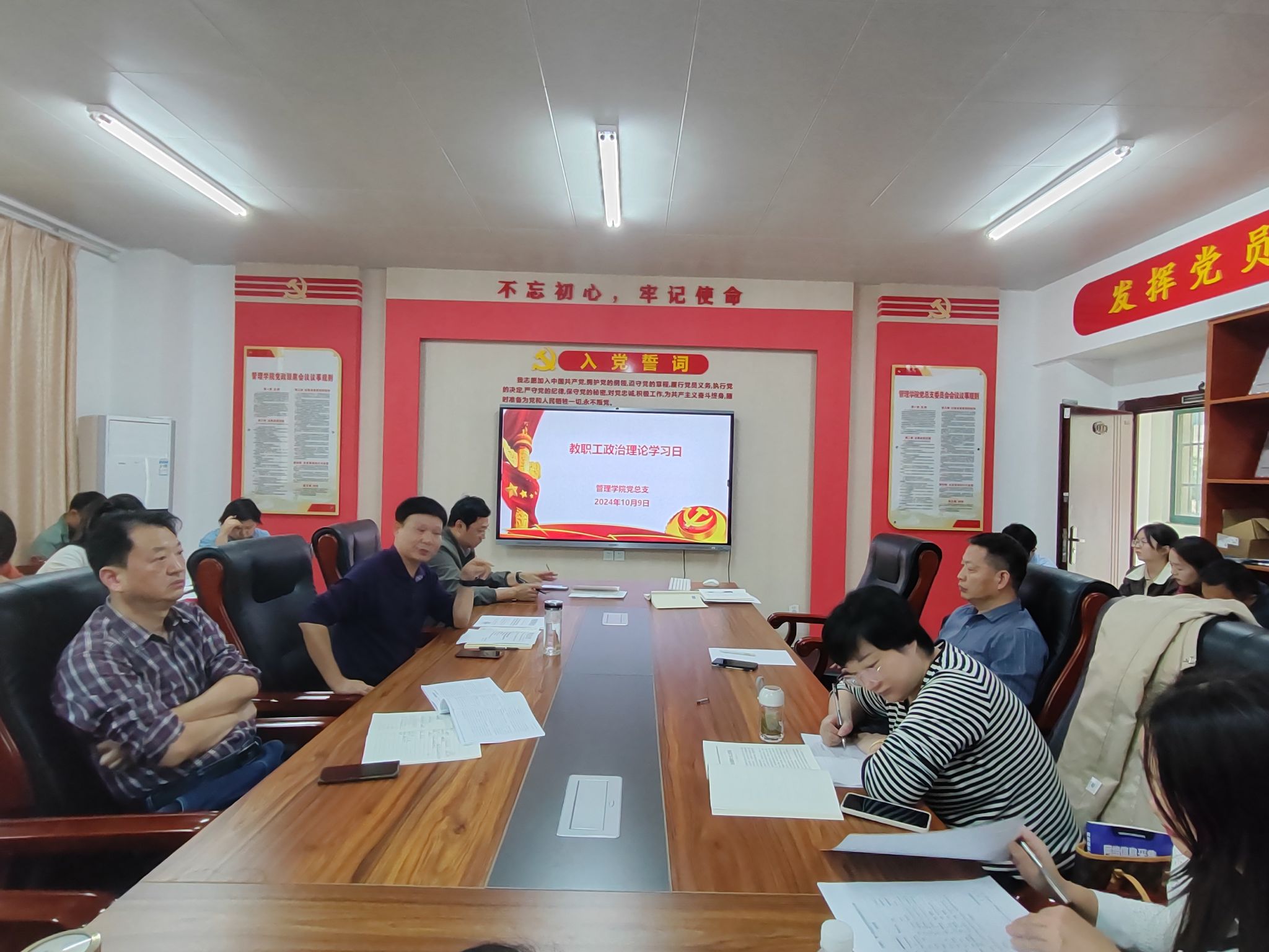 10月9日中午,管理学院召开专题会议,集中学习习近平总书记在全国教育大会上的重要讲话精神,认真研读习近平同志《论教育》中的重要篇目“教师要成为塑造学生品格品行品位的大先生”。通过原原本本学习,深刻理解习近平总书记有关教育的重要论述,准确把握教育强国的科学内涵和基本路径。管理学院党总支书记曹大友主持会议并作总结发言,校党委委员、管理学院院长朱小龙及全体教师参加学习。