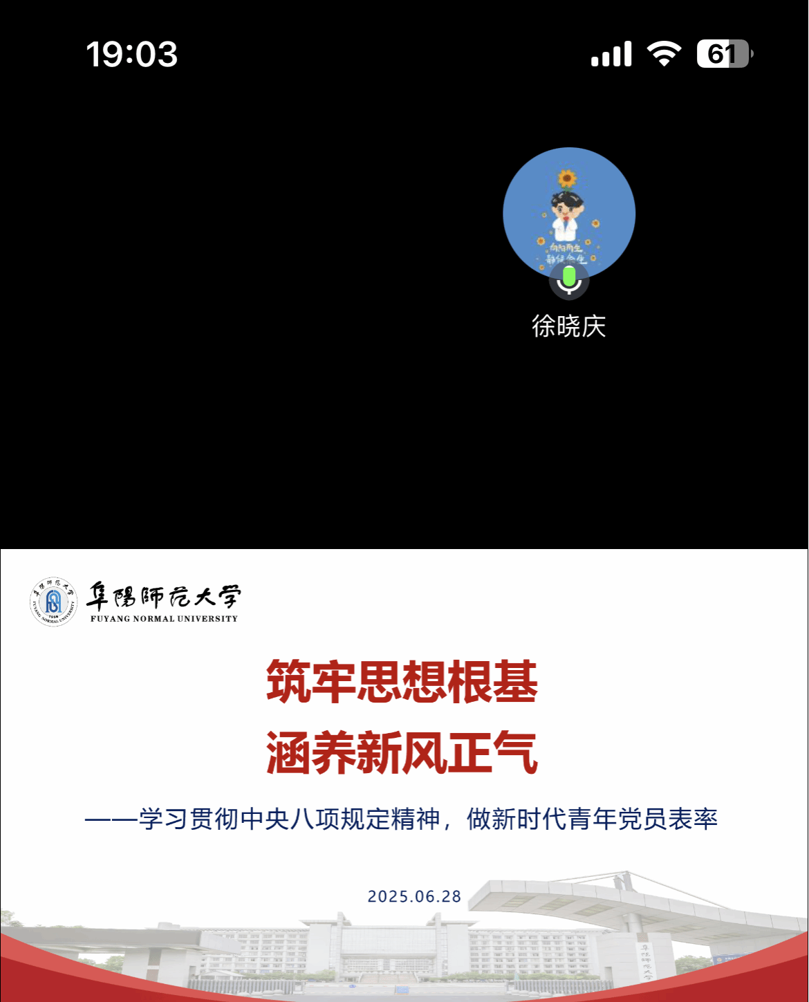 2025年6月28日,管理学院学生第三党支部与阜阳师范大学商学院物流管理专业学生支部联合开展“筑牢思想根基,涵养新风正气”线上主题党日活动。活动由阜阳师范大学商学院徐晓庆书记主持,管理学院支部书记操炜、两个学生支部全体本科党员共同参与,通过理论学习与交流共建,强化新时代青年党员的责任担当。
