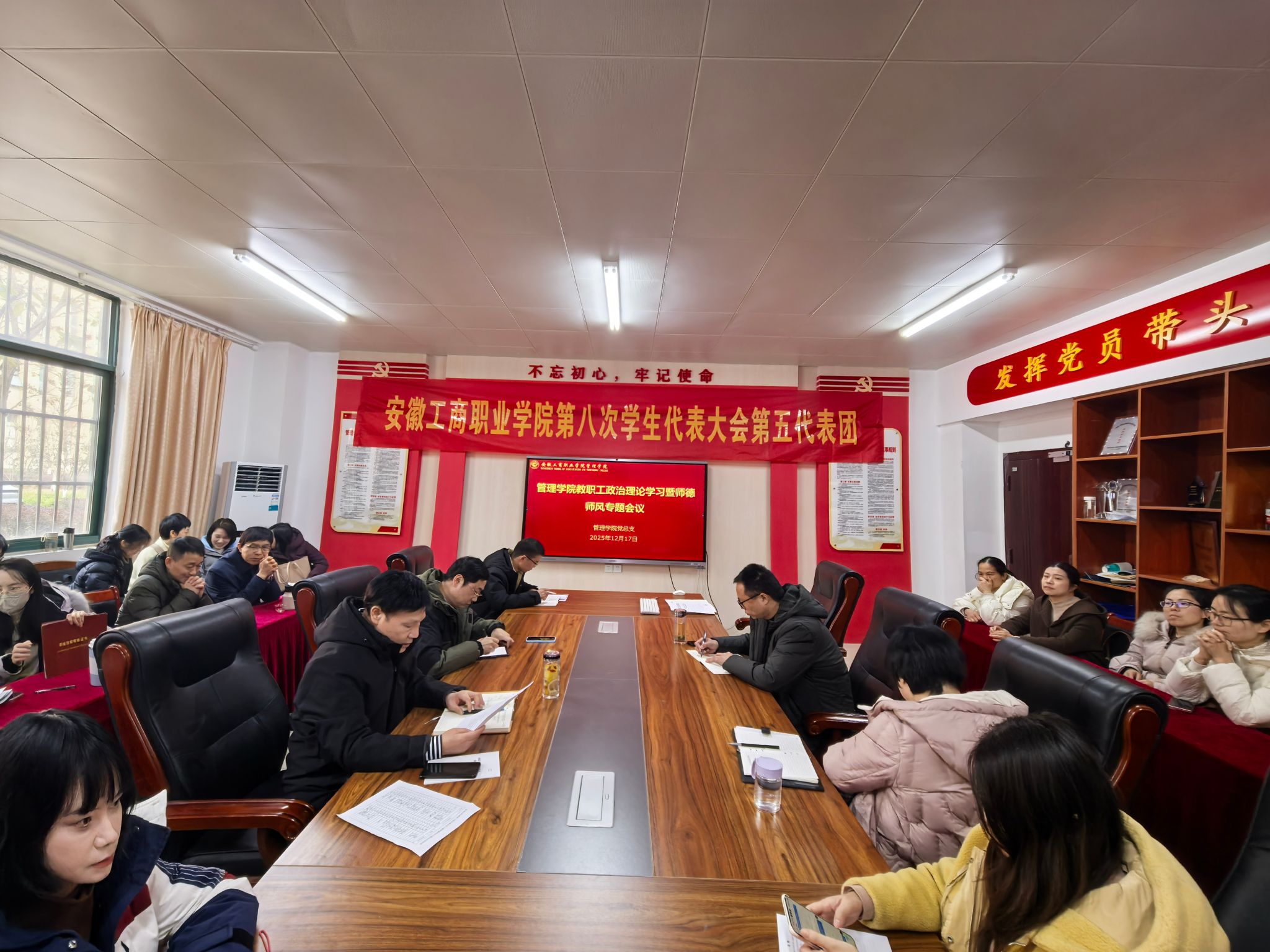 为深入学习贯彻党的二十届四中全会精神,深刻领会习近平总书记关于网络强国的重要思想,进一步强化教职工师德师风建设,切实落实立德树人根本任务,12月17日中午,管理学院党总支召开12月份教职工政治理论学习暨师德师风专题会议。学院全体教职工参加会议,会议由党总支书记曹大友主持。