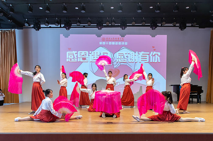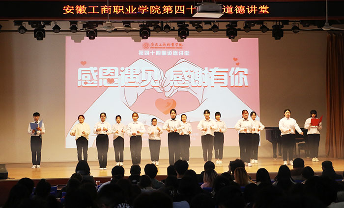 活动以“感恩遇见,感谢有你”为主题。此次道德讲堂以营造“学会感恩,懂得感恩”的校园风尚为目的,进一步树立同学们的社会责任感和历史使命感。开场舞《华夏》在传统的中国乐风中畅显悠悠华夏的千年神韵。20级幼管专业学生通过一曲《水调歌头》表达了乐观旷达的人生态度和对生活的美好祝愿、无限热爱。小品《老爸》的演绎希望同学们爱父母,敬父母,感恩父母的养育之恩。歌曲《明天你好》、朗诵《感恩生命,原来我们如此幸福》向同学们诉说了面对一切命运都要持爱的态度,感谢命运的馈赠之恩。青年志愿者协会带来的手语舞《指尖的恩,诗中的情》,同学们用十根舞动的手指传递出的温暖、真挚的爱。