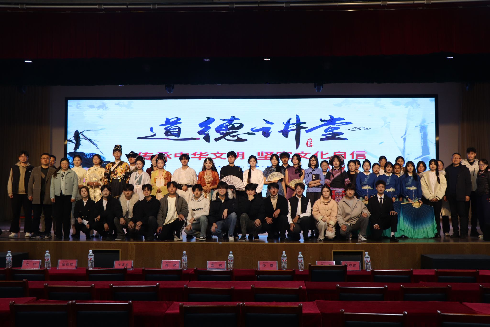 文脉相承,赓续千年;德润人心,筑梦未来。为深入贯彻落实立德树人根本任务,厚植青年学子文化自信根基,12月1日中午,校第五十八期道德讲堂在大学生活动中心举行,本次讲堂由旅游健康学院承办。讲堂以“传承中华文明,坚定文化自信”为主题,通过民俗表演、非遗展示、艺术浸润、家风熏陶等环节让师生们在沉浸式文化体验中感受文明温度,在互动式教育中坚定理想信念,共同奏响传承中华优秀传统文化的美好乐章。旅游健康学院党政班子成员及部分老师和辅导员出席本次活动。