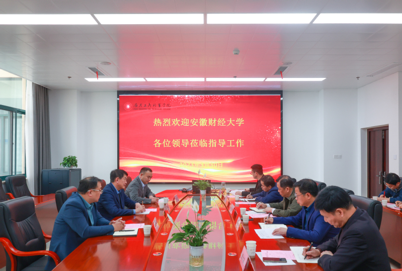 3月30日下午,安徽财经大学党委副书记杨烨、学生处处长张亚、教务处副处长廖信林一行来我院开展专升本联合培养学生专项调研。院领导李雪、胡捍东接待了杨烨一行,管理学院、经济贸易学院、信息工程学院、本科教学部等相关部门负责人以及本科班辅导员参加了会议。