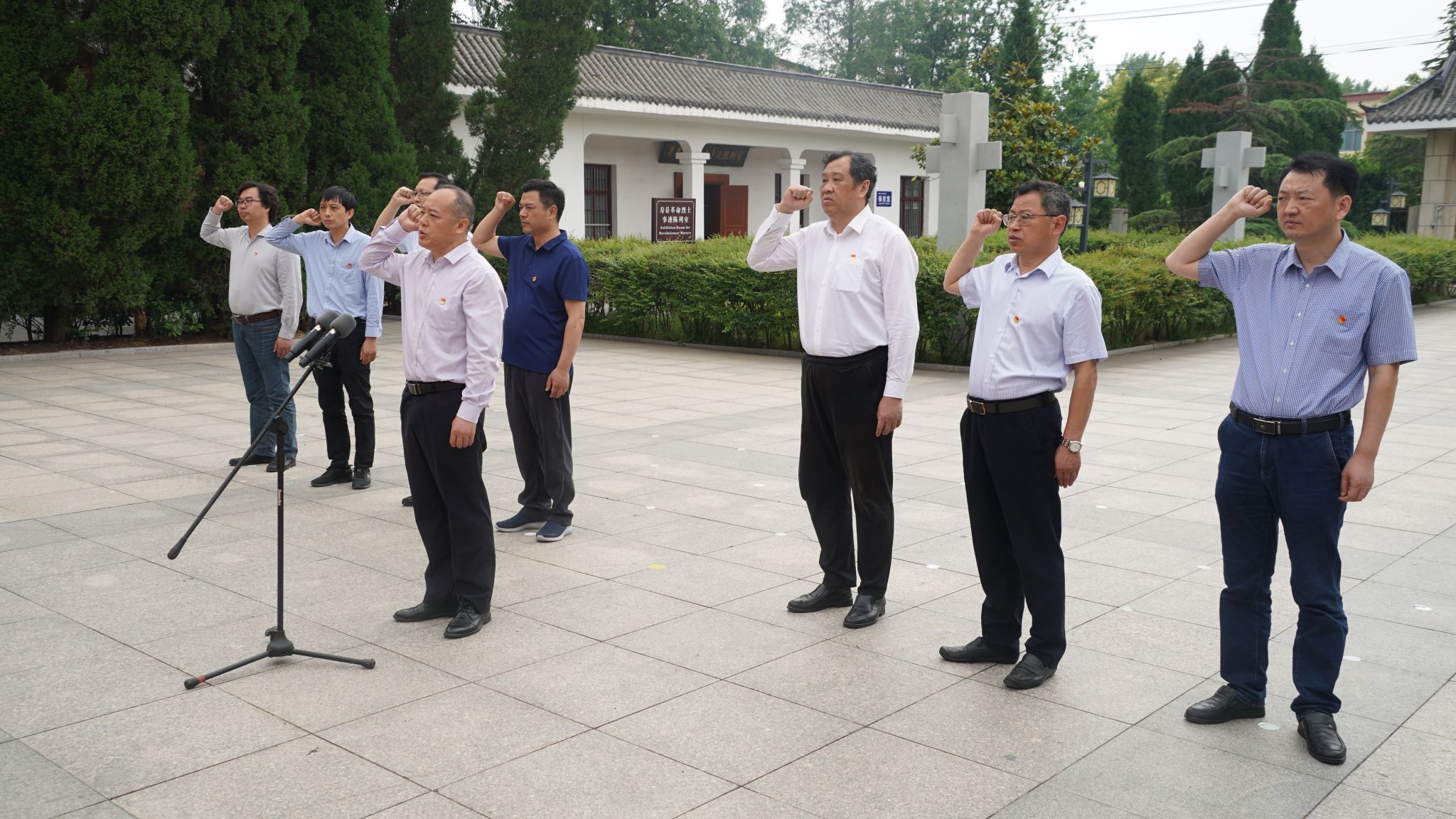 在讲解员的带领下,全体人员首先参观了小甸集特支纪念馆,认真聆听了小甸集特支的成立过程和革命先烈先进事迹,详细了解了中共小甸集特别支部作为安徽省最早的党组织的成立背景和发展历程。通过陈列的珍贵历史资料和物品,身临其境地感受“星星之火”渐成“燎原之势”的光辉奋斗历程。随后,全体人员向革命烈士纪念碑敬献花篮,向长眠于此的革命先烈鞠躬致敬,齐建平带领班子面对鲜红的党旗重温入党誓词。