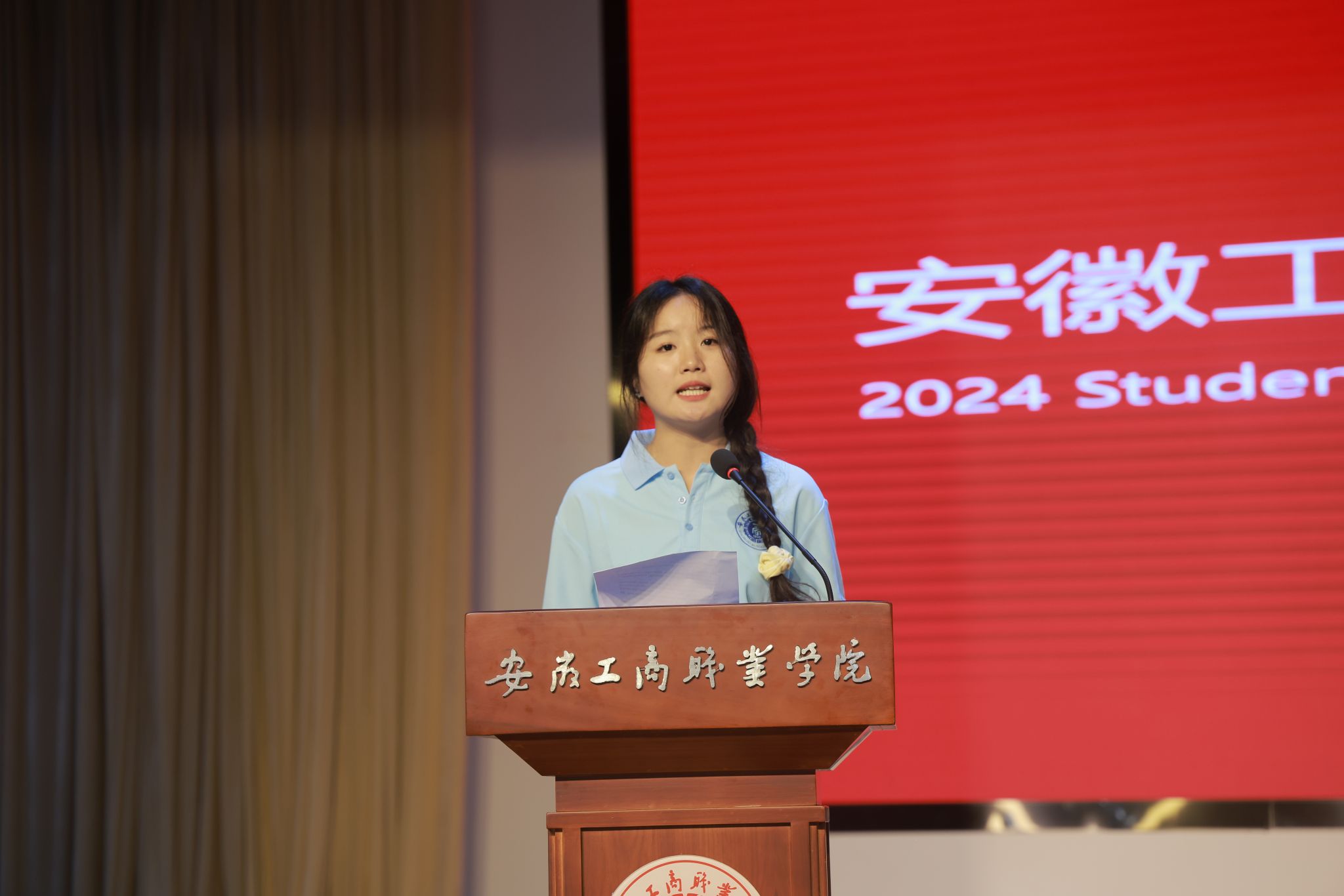 党委委员、副院长胡捍东分别宣读了《关于准予安徽工商职业学院2024届毕业生毕业的决定》和《安徽工商职业学院关于表彰2024届优秀毕业生的决定》,与会领导为毕业生代表颁发毕业证书,并为优秀毕业生代表颁发优秀毕业生荣誉证书。