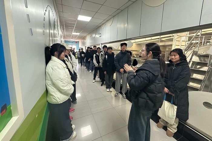 12月25日下午,在校团委老师、各二级学院团总支书记的带领下,“青马班”所有学员共同前往合肥伊利乳业有限责任公司参观学习。学生们在聆听中,不仅了解了伊利牛奶从源头到餐桌的严格质量控制流程,更深刻体会到了企业从小到大,从弱变强,科技赋能快速发展的深刻变迁,对“崇尚劳动、热爱劳动、辛勤劳动、诚实劳动”的劳动精神有了更加深刻的理解。