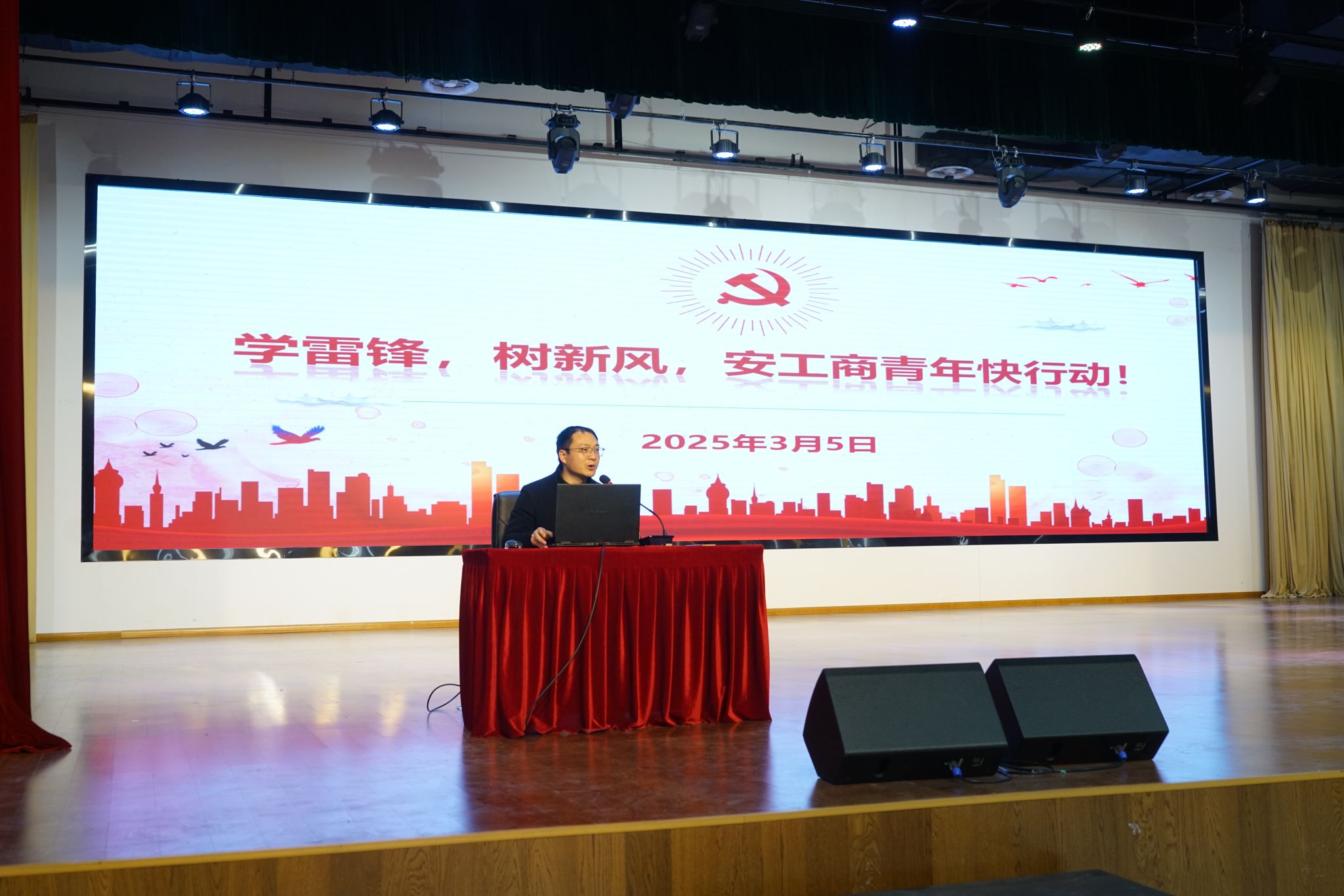 吕涛老师以《学雷锋,树新风,安工商青年快行动!》为题,结合雷锋同志的生平事迹,深入阐释了雷锋精神“热爱党、热爱祖国、热爱社会主义”的理想信念,“服务人民、助人为乐”的奉献精神以及“干一行爱一行、专一行精一行”的敬业品质。他通过生动的党史故事和青年榜样案例,号召同学们将雷锋精神融入日常、化作经常,坚定理想信念,锤炼过硬本领。