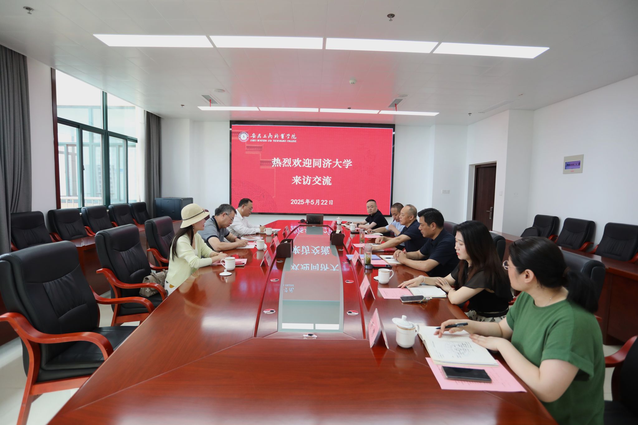 5月22日上午,同济大学继续教育学院院长金福安、副院长考书健、安徽人才发展中心主任王勤璟一行来访我校,就人才培养、师资队伍建设、国培基地建设、校际合作等事宜进行座谈交流。座谈会在双凤校区综合楼1号会议室举行,我校党委书记齐建平,党委副书记陈行,党委委员、组织人事处处长刘浩,厅挂办副主任张娴,组织人事处副处长王韦等参加座谈。