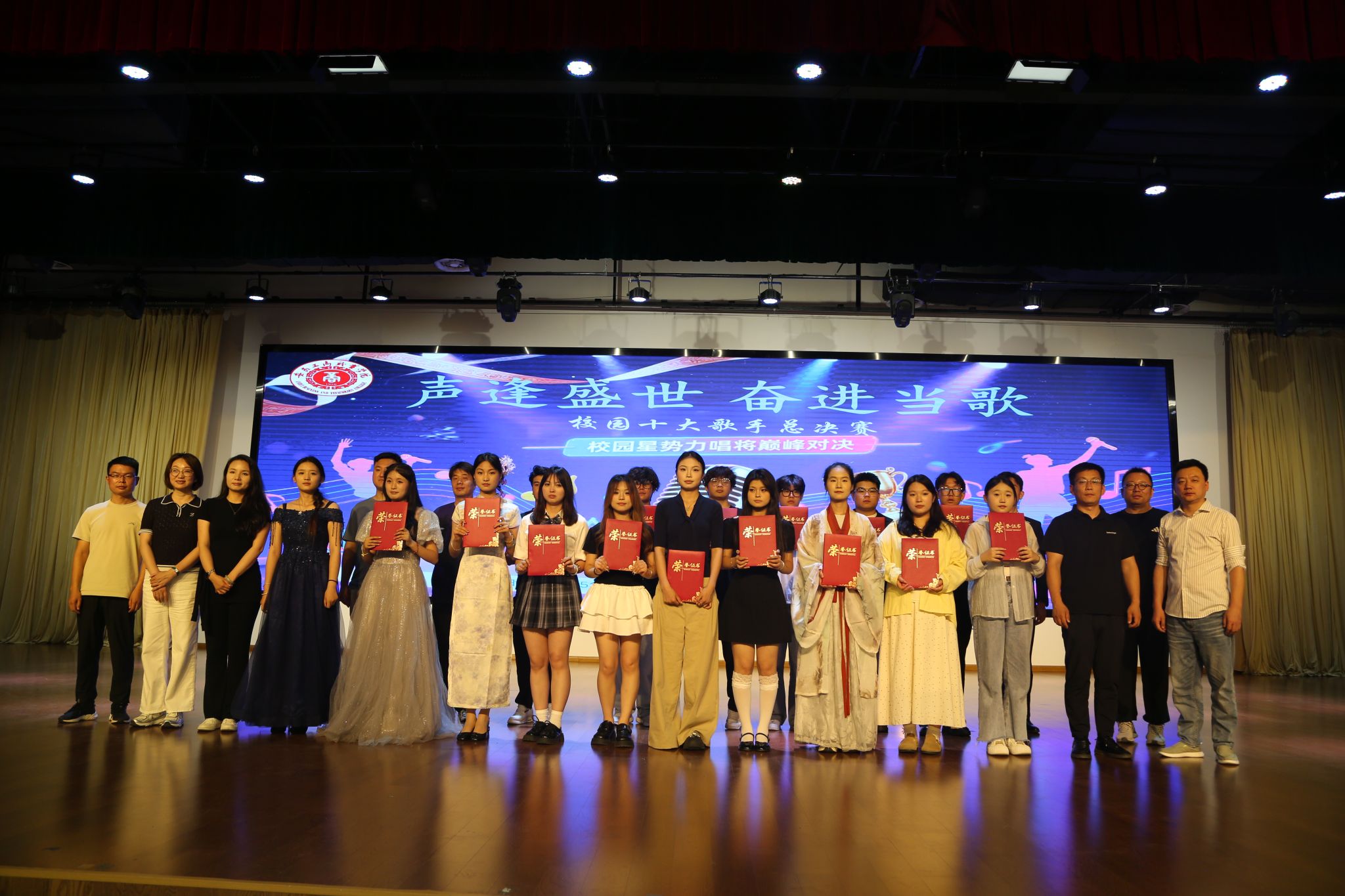 经过激烈角逐,评委们从演唱技巧、舞台表现、情感表达等多个维度对选手进行综合评分。最终,吴子墨和牛梦晴、吕蕊莹两组选手凭借出色的表现荣获本次比赛一等奖;阿卜杜拉·如则麦麦提等六位选手获本次比赛二等奖;谢湘豫等七位选手获本次比赛三等奖,比赛前十位同学被授予“校园十大歌手”称号。评委嘉宾分别为获奖选手颁发了荣誉证书并与选手们亲切合影留念。
