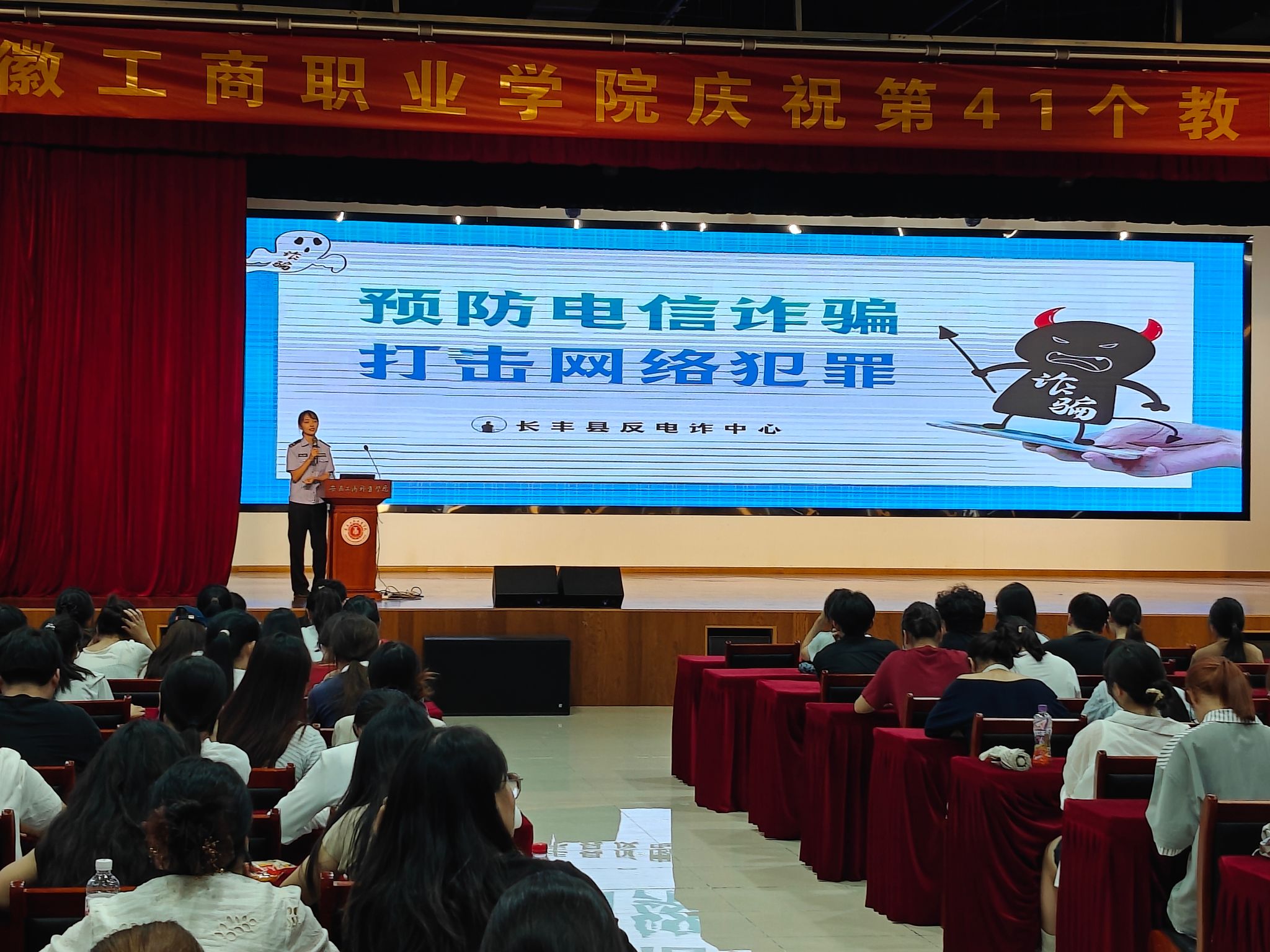 为进一步提升师生防范电信诈骗的意识和能力,营造安全、稳定的校园环境。9月10日下午,长丰县公安局反诈中心联合峰宁社区在我校大学生活动中心举办“预防电信诈骗,打击网络犯罪”的反诈宣传教育专题讲座。此次活动吸引了众多师生参与,现场气氛热烈,反响良好。