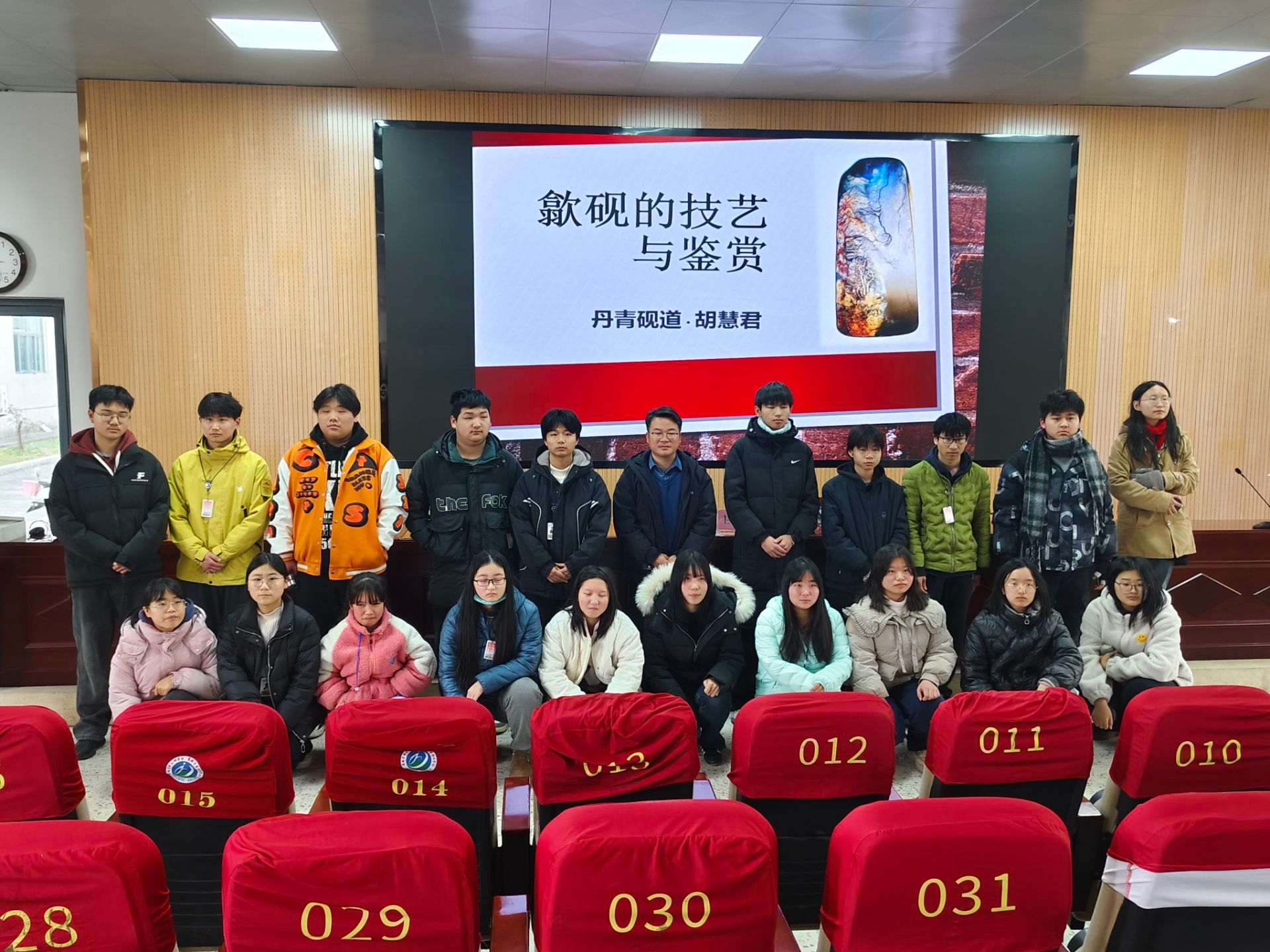 为弘扬中华优秀传统文化,推动非遗技艺进校园。1月12日上午,学校党委委员、副院长胡捍东率队赴安徽金寨职业学校开展校际交流,并联合举办“歙砚非遗大师进校园暨第七十一期‘意匠讲堂’”专题活动。本次活动特邀我校国家级徽派技艺大师工作室歙砚领衔人、安徽省工艺美术大师、歙砚制作技艺省级非遗传承人胡慧君担任主讲。安徽金寨职业学校学术报告厅内气氛热烈,两校师生共计200余人参与讲座。