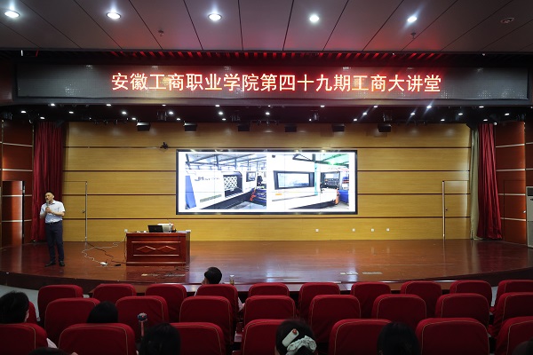 5月29日下午,由安徽省教科文卫体系统举办、安徽工商职业学院承办的劳动模范·工匠大师进校园主题宣讲活动暨第四十九期工商大讲堂在双凤校区学术报告厅顺利开展。讲座邀请安徽省劳动模范、安徽省第二届江淮杰出工匠李厚富主讲,校党委委员、党委宣传统战部部长刘浩主持报告会,校工会主席李祖武、思政课教师和学生代表共计300余人现场聆听。