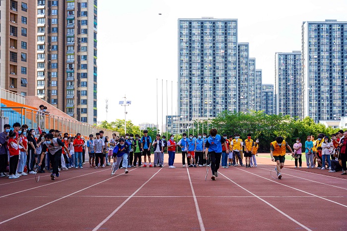 为鼓励广大师生积极参与体育锻炼,弘扬中华体育精神,弘扬体育道德风尚,营造全民喜迎亚运会的浓厚氛围。5月4日下午,我校在田径场举办了“爱运动 迎亚运”趣味运动会,各二级学院以及校级学生组织共组成了9支参赛队伍,共有200余名师生积极踊跃参赛。