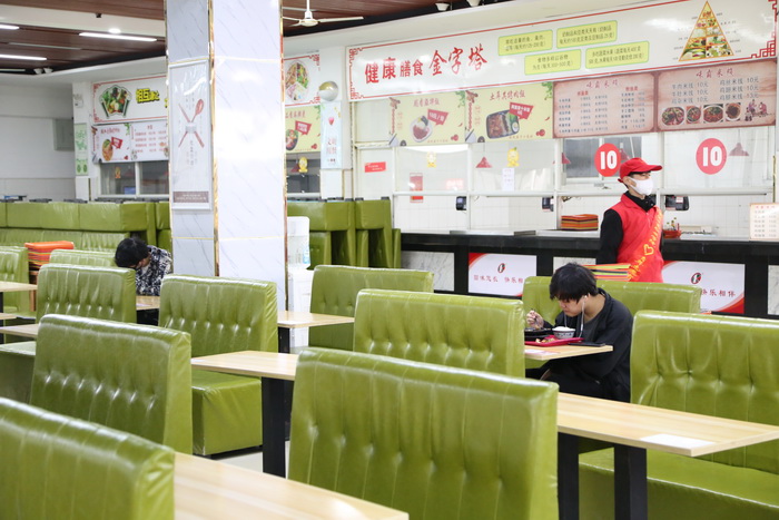 “同学,请佩戴口罩进入食堂”、“同学,请保持一米距离”。每到用餐时间,青年志愿者的身影就会出现在食堂中,他们严格按照疫情防控期间学校就餐规定,耐心引导同学们有序就餐,现阶段每天参与文明就餐志愿服务活动30余人,在午、晚餐两个时间段轮流值守,主要负责在学校各食堂出入口管控口罩佩戴情况以及维持食堂内就餐秩序,营造良好的用餐环境。