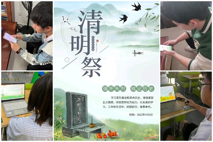 活动期间,我校全体学生积极响应学校《2022年清明节文明祭祀倡议书》,通过电脑、手机登陆中国文明网“网上祭英烈”活动专题网站,通过线上献花、点烛、鞠躬、留言致敬等方式与英烈“对话”,缅怀革命先烈,赓续红色基因。一次次瞻仰墓碑,一次次敬献鲜花,一条条留言寄语,同学们在庄严肃穆的仪式中接受“沉浸式”的精神洗礼,在缅怀中凝固永不忘却的家国记忆。