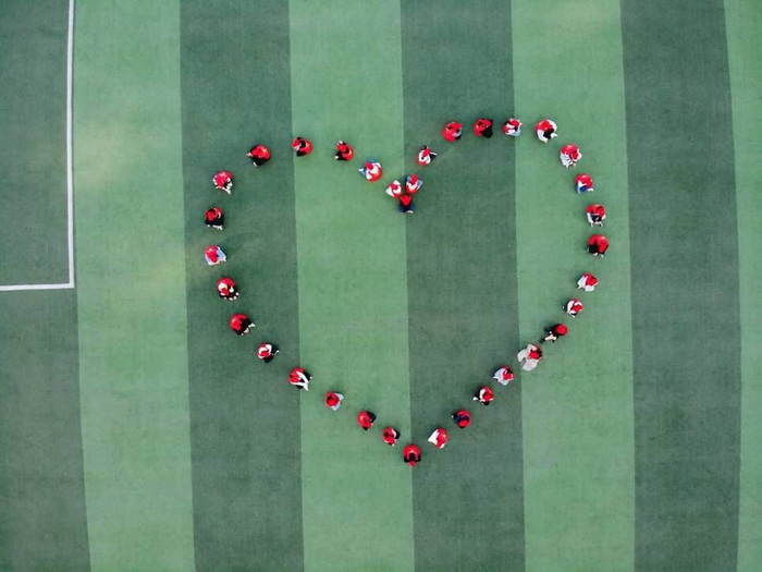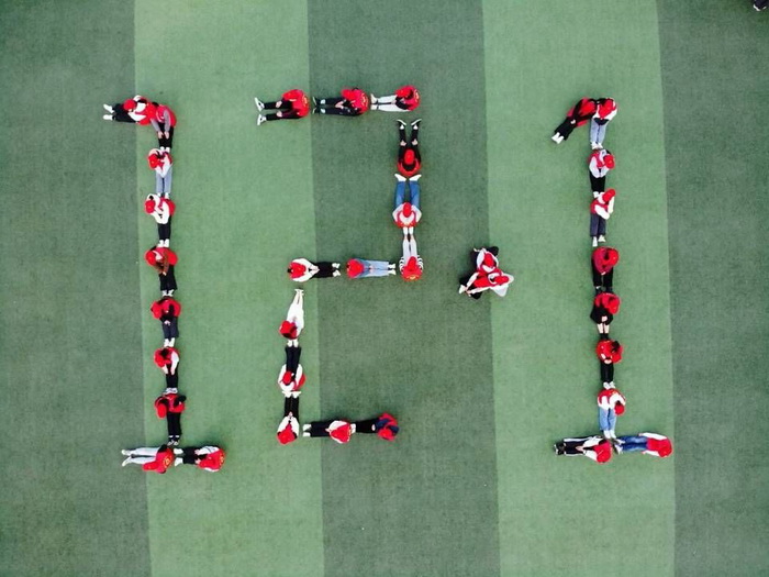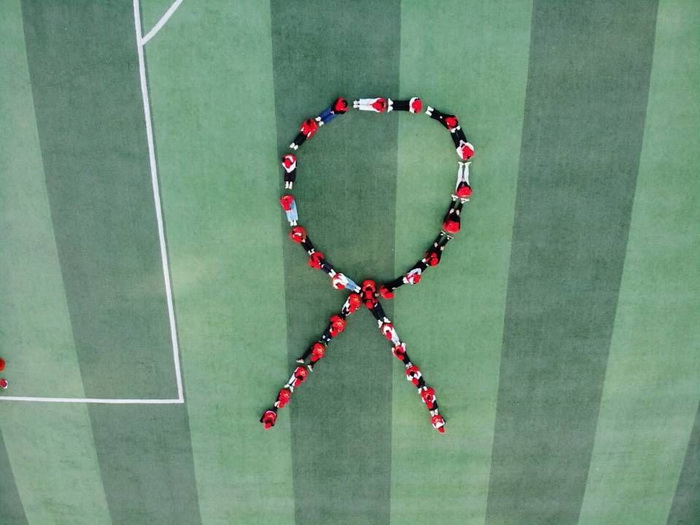11月27日上午八点在操场由志愿者们排列组合出12·1的字样和艾滋病防治标识等一系列图案,照片由无人机在高空拍摄,通过一些关于艾滋的图案让学生从另一个角度看待艾滋。