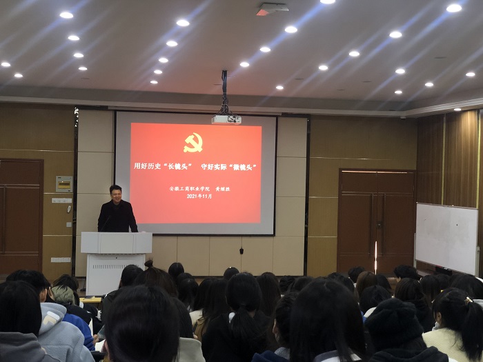 11月8日中午,校党委委员、纪委书记黄继胜以《用好历史“长镜头” 守好实际“微镜头”》为题,为第三十二期入党积极分子培训班(七班)的学员做专题讲座,解读了党的组织纪律和作风。