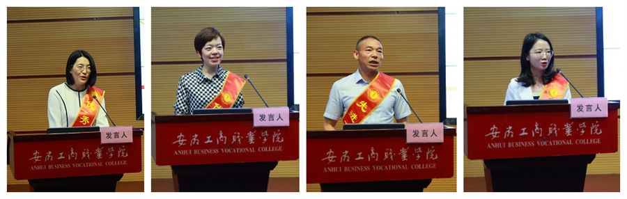 旅游学院牟婉琼同志、管理学院郭晓晨同志、校办公室胡多军同志、经济贸易学院杨玉娇同志分别代表受表彰的优秀个人发言。
