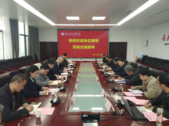 2月24日上午,安徽国际商务职业学院党委书记杨本清、校长张卿一行11人莅临我校交流调研教育教学及服务保障工作。学校党委书记孙永、校长李雪热情接待了客人一行。学校办公室、组织人事处、教务处、财务处、后勤服务中心等部门负责人参加接待。