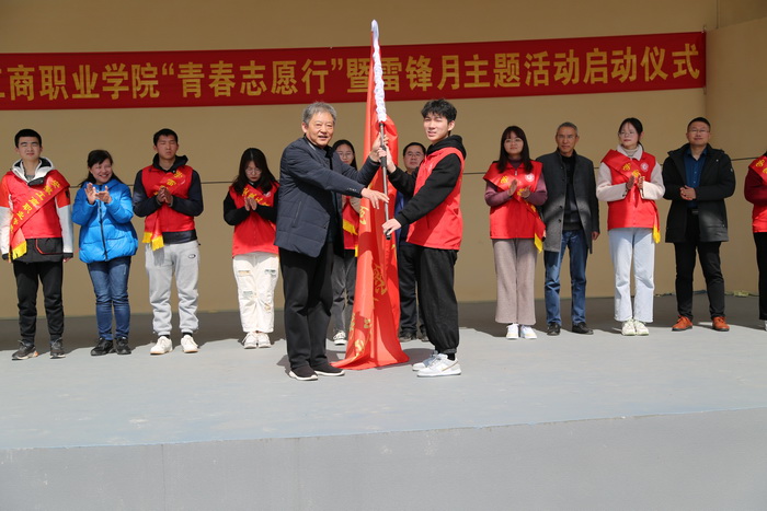 仪式首先由赵艳作动员讲话。她指出大家要统一思想、凝心聚力,身体力行,从身边的点滴小事做起。让大家在“青春志愿行”暨雷锋月系列活动中锤炼品格,以坚定如铁的决心,铿锵有力的步伐永远跟党走,为建设更加和谐美好的安工商贡献青春力量,用实际行动向建党100周年献礼!接着,各二级学院党总支书记为志愿者代表授予绶带,屈山林为“学雷锋”志愿服务队授旗。随后,校青年志愿者协会会长谭勇代表全体志愿者向全校师生发出“向雷锋同志学习,广泛参与到志愿服务活动中来,让志愿服务之花成为安工商的风景,让雷锋精神在安工商的传承永不停歇”的倡议。最后,全体人员与安之声合唱团一起合唱《学习雷锋好榜样》,伴随着歌声一起缅怀革命先烈雷锋,唱响雷锋精神。