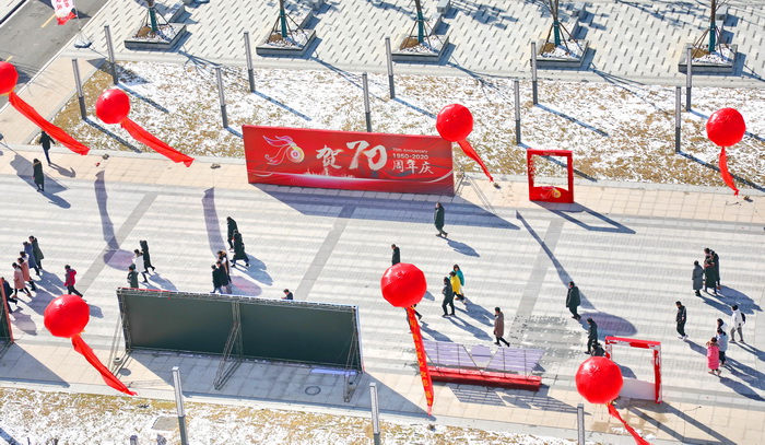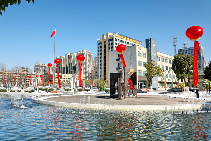30日上午,大地宿雪未融,银装素裹,安徽工商职业学院校园内虹门高悬,彩旗飘扬,红球点缀,一派节日的热烈与喜庆。