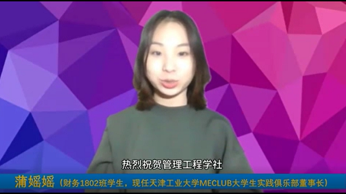 视频截图:天津工业大学MECLUB大学生实践俱乐部董事长蒲媱媱