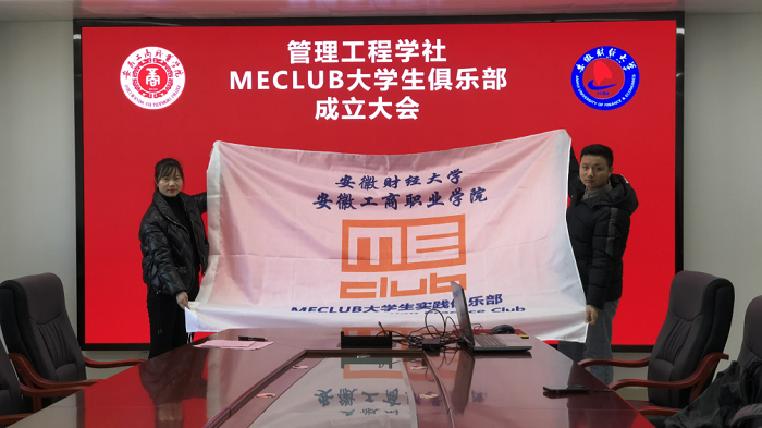 社团的成立受到了北京大学光华管理学院原管理科学与信息系统系党委书记、博士生导师王其文教授,安徽财经大学教务处处长经庭如教授,天津工业大学MECLUB大学生实践俱乐部的大力支持,纷纷发来祝贺视频,与会人员一起观看了祝贺视频。