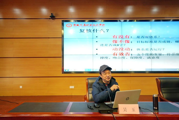 会议邀请了安徽交通职业技术学院教务处处长吴玉作教学诊改专题报告,吴玉以《打造两链,找准诊改的起点》为题,介绍了教学诊改工作的相关要求,围绕学校、专业、课程、教师、学生等五个层面介绍了教学诊改的内容,并结合安徽交通职业技术学院诊改复核工作经验,对复核的四个环节(两链打造、螺旋运行、引擎驱动、平台支撑)进行了深入剖析,指出了“两链”打造存在的普遍性问题,并对教学诊改工作的实践探索提出建议。
