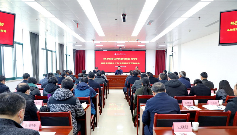 12月21日下午,中共安徽省委党校(安徽行政学院)教务部调研员伊菊带领第九期加强高校思想政治工作和事业单位领导人员管理专题研讨班一行40余人来我校双凤校区调研。校领导孙永、屈山林、汪贤武、张智清、黄继胜在综合楼第二会议室热情接待了全体学员。