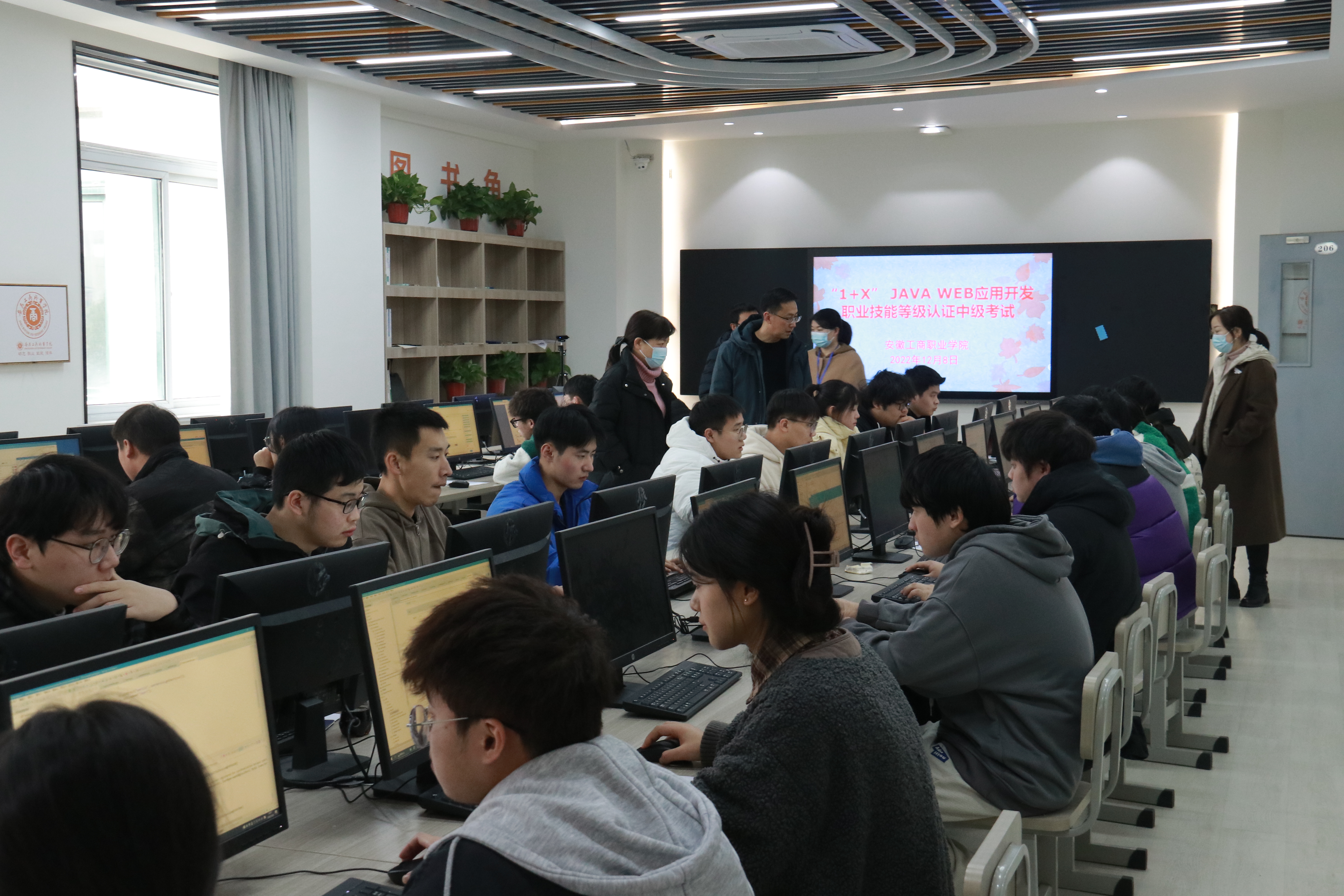 为深入贯彻落实《国家职业教育改革实施方案》和《关于在院校实施“学历证书+若干职业技能等级证书”制度试点方案》文件精神,12月8日,信息工程学院在206、207实训室举行1+X JavaWeb应用开发(中级)职业技能等级证书考核。来自20软件技术专业50名同学报名参加了此次考核,考试当天,信息工程学院党政领导亲临比赛现场查看指导。
