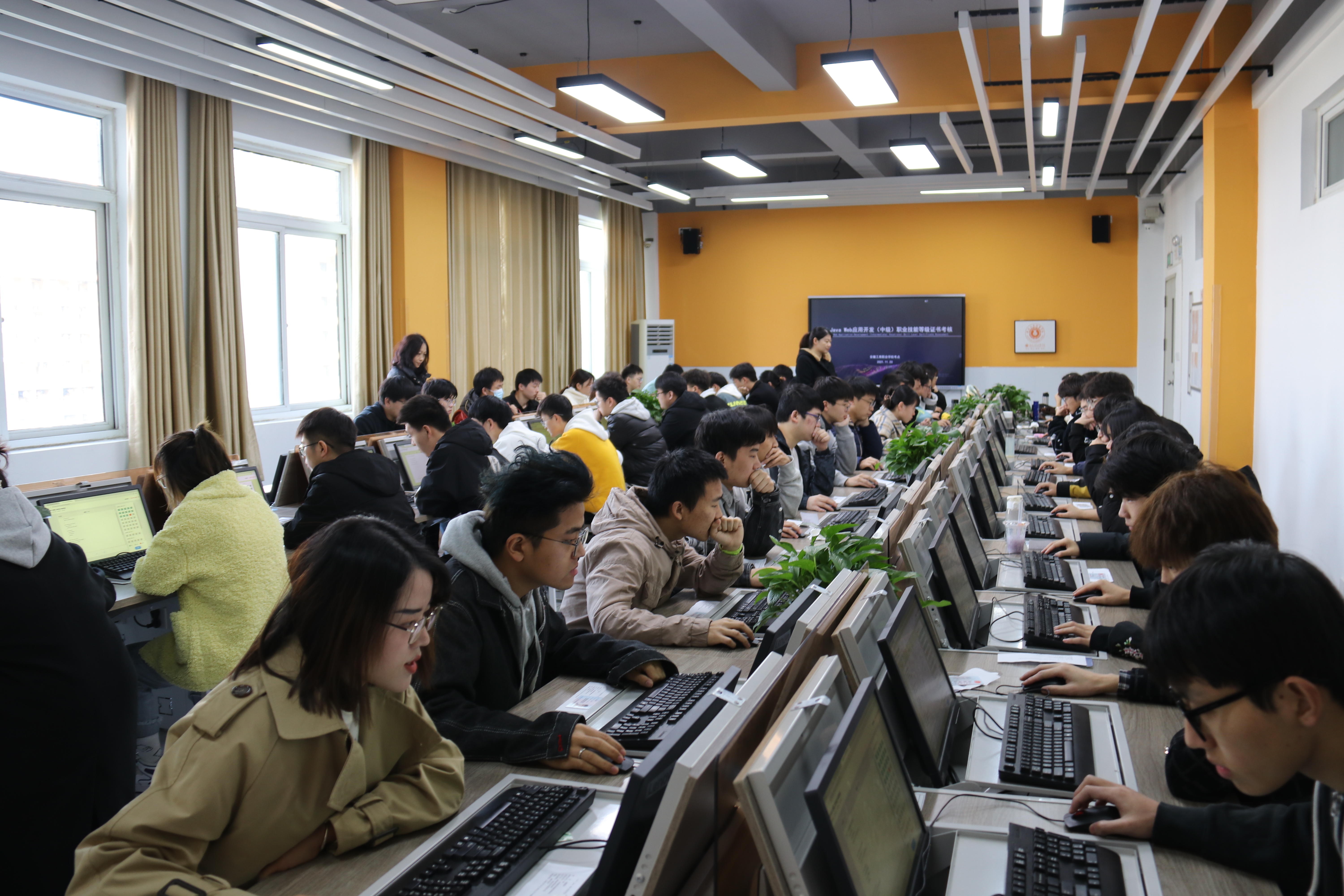 11月23日,信息工程学院在408实训室举行JavaWeb应用开发(中级)职业技能等级证书考试。JavaWeb应用开发职业技能等级证书是今年获批的第四批证书,在校院领导的大力支持下,软件技术教研室积极申报,成功获批该项目试点院校和考点。自获批试点院校以来,信息工程学院高度重视,7月,选派软件技术专业多名骨干教师参加JavaWeb应用开发职业技能等级考证(中级)师资培训,并在课程教学中充分融入考证内容,9月,从19级软件技术专业遴选56名同学参加了模拟考试,并最终选派48名同学参加了本次认证考试。