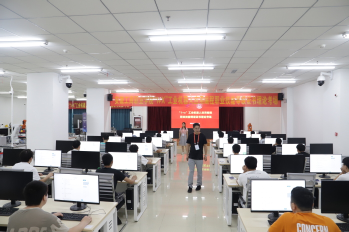 6月26日至27日,我校应用工程学院在综合楼辅楼207智能制造虚拟仿真实训室顺利完成了2021年“1+x”工业机器人应用编程职业技能等级证书考试工作。校党委副书记、校长李雪,教务处副处长姚庆锋在应用工程学院负责同志的陪同下对考场进行了巡查,并对应用工程学院“1+X”证书制度建设工作以及此次考试组织工作给予了充分肯定。