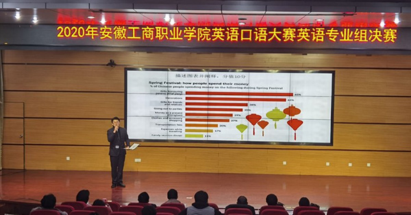 12月24日下午,英语口语大赛(专业组)决赛在学术报告厅举行。经层层选拔,来自商务英语专业的260多名同学参加了初赛和复赛,最终10名同学进入决赛。决赛包括职场描述、情景交流等环节。选手们时而激情四溢,时而沉着冷静,充分展示了自己过人的英语水平和敏捷的思维能力。该项比赛旨在检验和促进高职高专学生运用英语进行职场交际的综合能力,为参赛选手提供了一个学习英语知识和提高英语应用技能的精英大课堂。