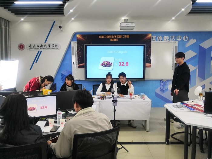 为提升教师教学改革能力,满足新形势下对高职院校人才培养的新需求,管理学院青年教师发展中心组织第十五期活动——系列课改公开课之一《新零售直播带货综合实训》。12月11日晚17:00-19:00,由经贸教研室主任方芳主讲本次公开课,全面展现新零售环境下连锁经营管理专业人才培养及课程改革的阶段性成果。本次公开课在连锁专业零售全媒体触达中心提供线下观摩、在看点直播平台提供线上观摩。经统计,直播活动覆盖安徽省内十二个城市永辉超市58家门店,销售总额累计近五万元。