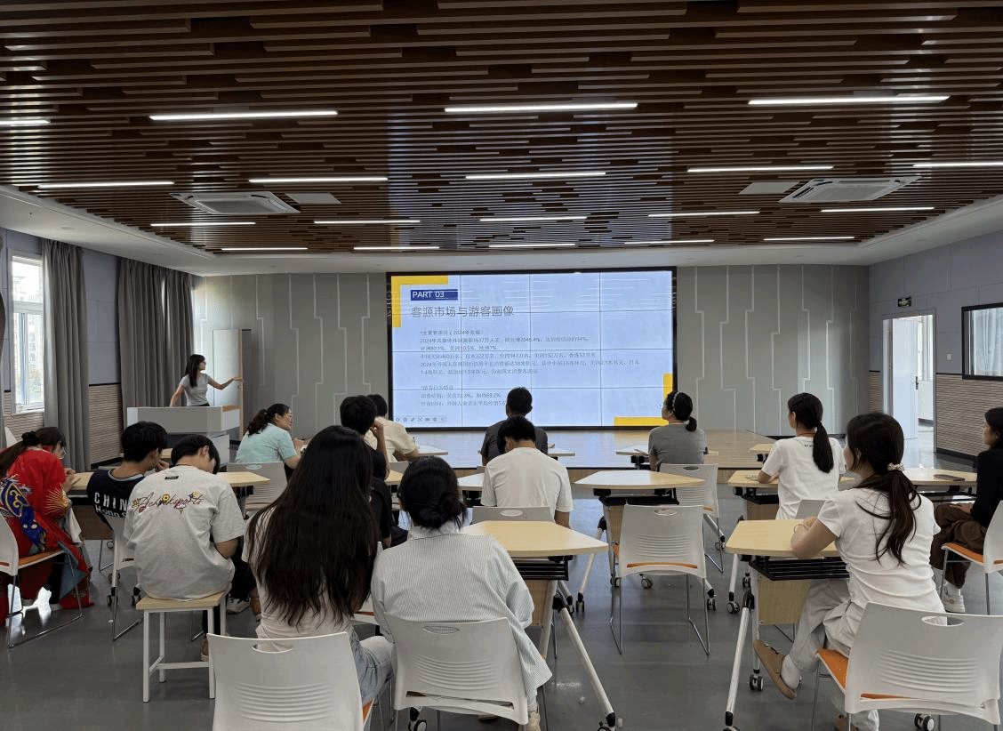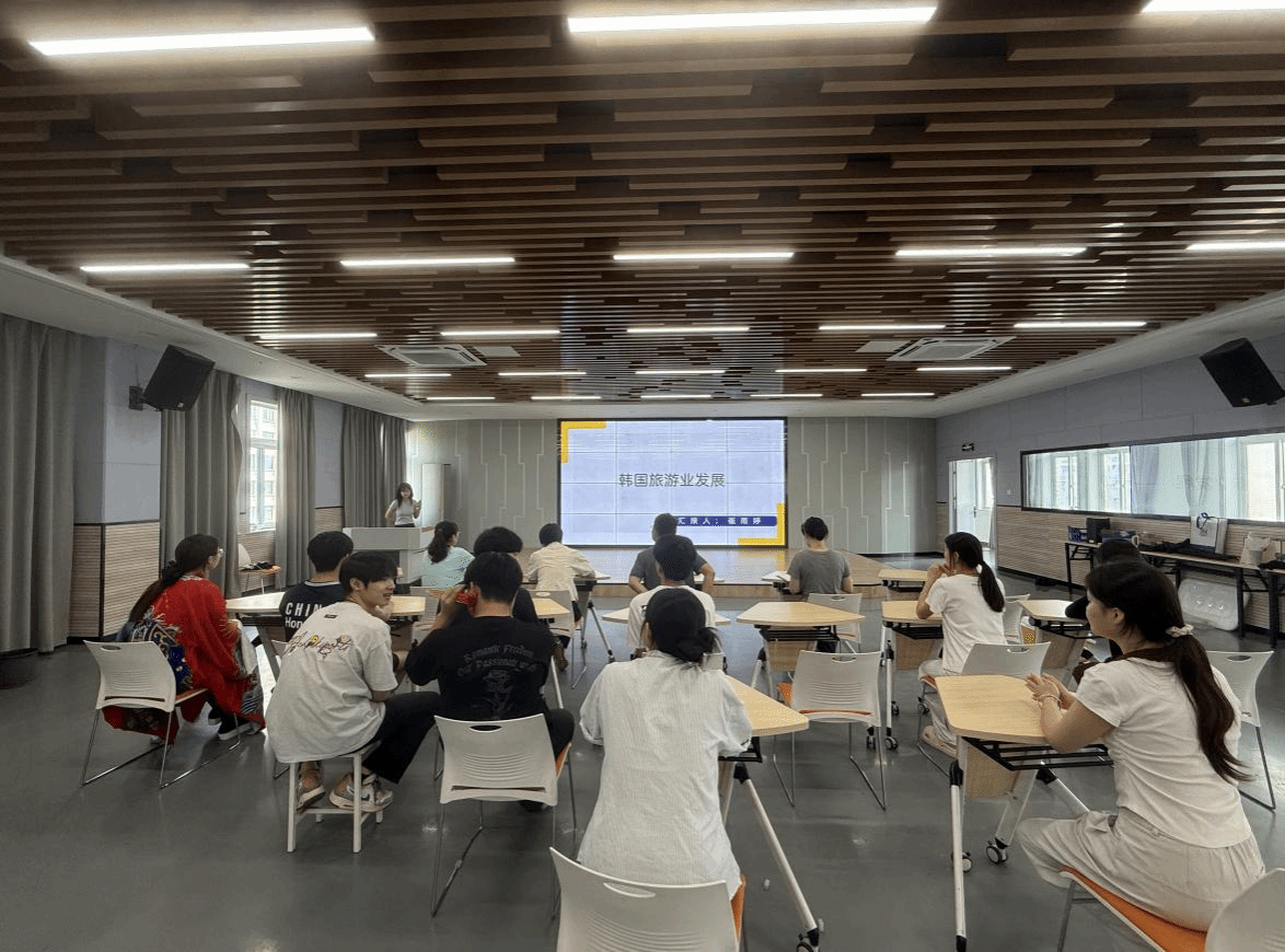 政治理论学习结束后,紧接着是由崔雨婷老师带来的精彩讲座,主题为“韩国旅游业发展概况”,支部党员教师和部分学生代表参加。崔雨婷老师凭借其深厚的专业知识与丰富的行业经验,为大家揭开了韩国旅游业的神秘面纱。她从韩国旅游业的发展历程讲起,详细阐述了韩国如何凭借独特的文化魅力、完善的旅游基础设施以及创新的营销策略,逐步在全球旅游市场中崭露头角。通过丰富的图片、详实的数据以及实际案例,崔雨婷老师从宏观背景与行业地位、核心旅游资源分析、客源市场与游客画像、政策与基础设施支持、当前挑战与风险、韩国旅游领域的专业建设与教育体系六个方面深入分析了韩国旅游业的发展情况。讲座过程中,党员们全神贯注,被崔雨婷老师精彩的讲解深深吸引,不少党员还就感兴趣的问题与崔雨婷老师进行了互动交流,现场讨论氛围热烈。