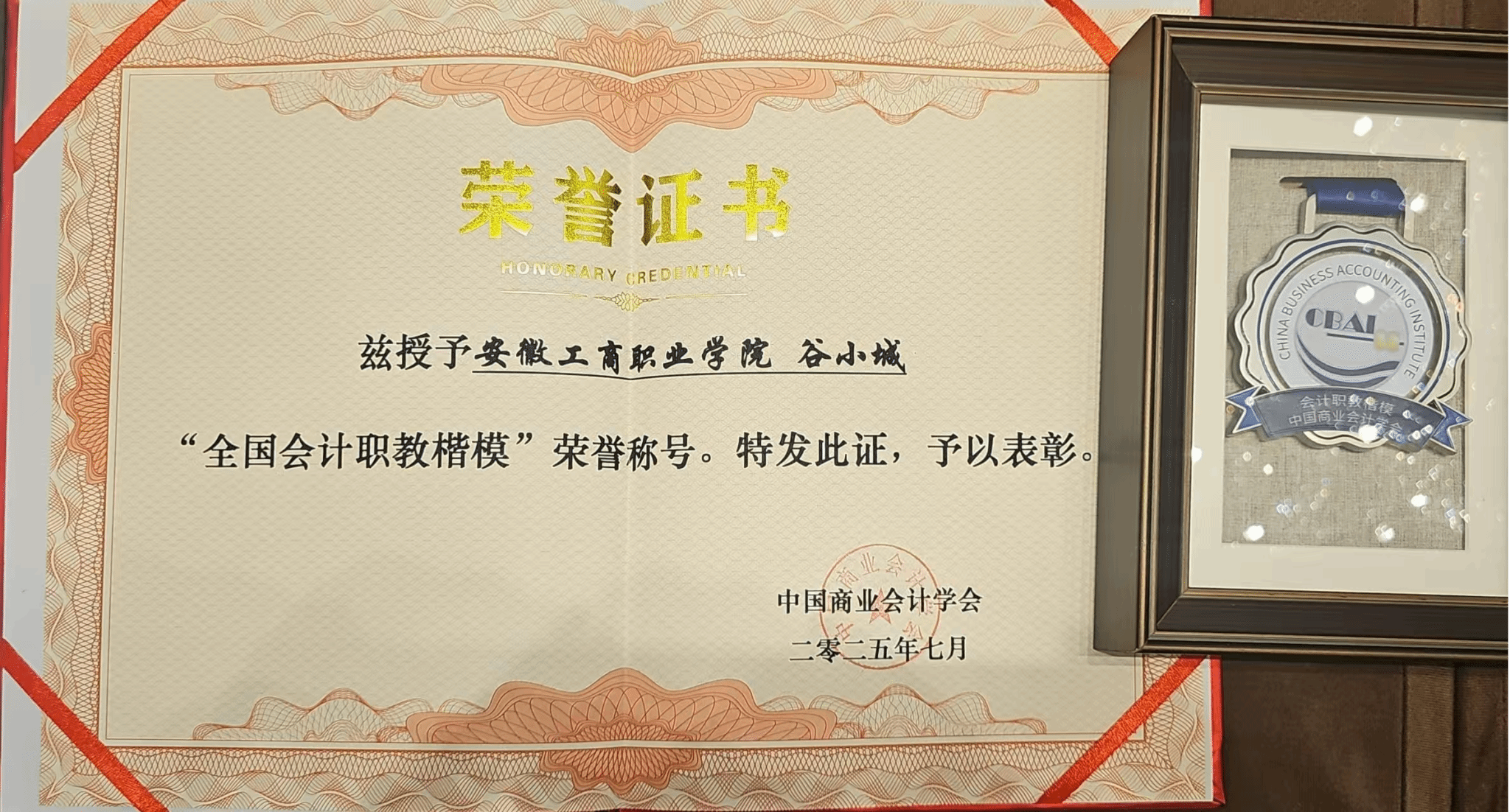 谷小城老师先后获评“安徽省首批教育世家”“安徽省优秀教师”等称号,获得国家级教学成果二等奖,国家级教学能力比赛一等奖、二等奖各一次,主编国家级规划教材。他坚持将课程思政融入教学全过程,在《Excel在财务中的应用》课程中首创“案例导学+实景演练”教学模式,获评国家级精品在线开放课程,在网易云课堂上线的《表格之道》累计吸引超百万学员学习,生动诠释了“让党旗在职教一线高高飘扬”的实践内涵。