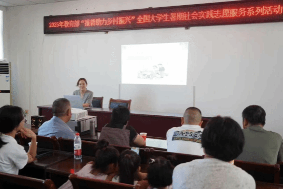 为深化新时代乡村精神文明建设,加强法治教育,把推广国家通用语言文字与推进农村移风易俗相结合,8月16日,安徽工商职业学院“普育乡风”志愿服务队在太湖县城西乡大龙村第二党支部党员活动室开展“法言法语”普法宣传活动。团队指导教师周丹萍通过典型案例解析、有奖知识问答、法律咨询互动等形式,用通俗易懂的普通话架起法治宣传的桥梁,让“普”与“法”走进村民生活。