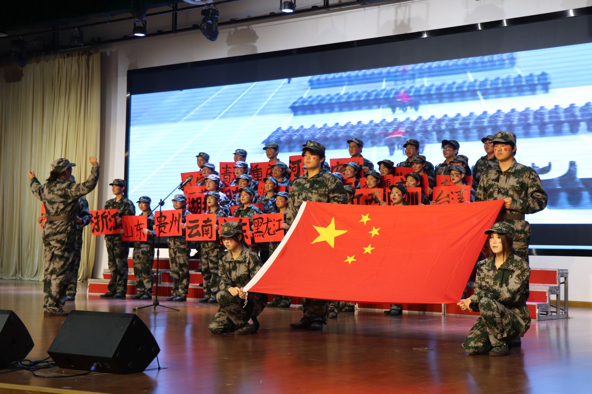来自各班级的26支参赛队伍以饱满的热情、昂扬的姿态依次登台,用歌声演绎经典抗战曲目。《松花江上》《黄河大合唱》《保卫黄河》等作品气势恢宏,再现了中华儿女浴血奋战的壮丽史诗;《没有共产党就没有新中国》《歌唱祖国》《学习雷锋好榜样》《强军战歌》等曲目通过多声部合唱与创意编排,展现了在党的统一领导下,军民团结的智慧与力量;《如愿》《紫荆花盛开》《少年中国说》以深情旋律抒发新时代青年对先烈的缅怀,将现场气氛推向高潮。