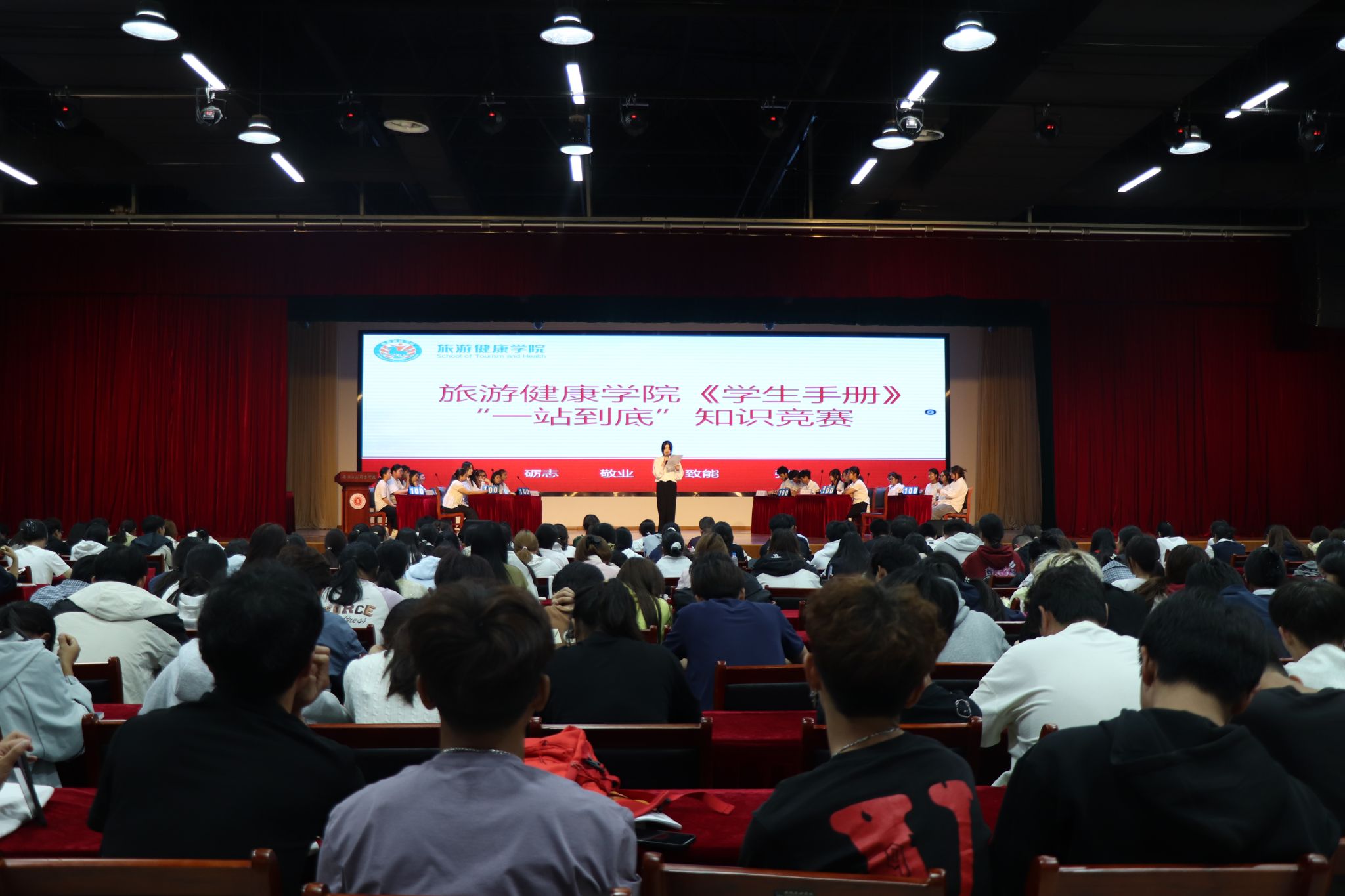 安徽工商职业学院《学生手册》是指导和规范在校大学生日常行为,维护学校教育教学和生活秩序,保障学生合法权益的重要规范性文件。为进一步加强学生日常行为规范,引导和督促学生自觉遵守校纪校规,巩固良好的校风和学风,旅游健康学院于近期开展了《学生手册》“一站到底”知识竞赛活动。
