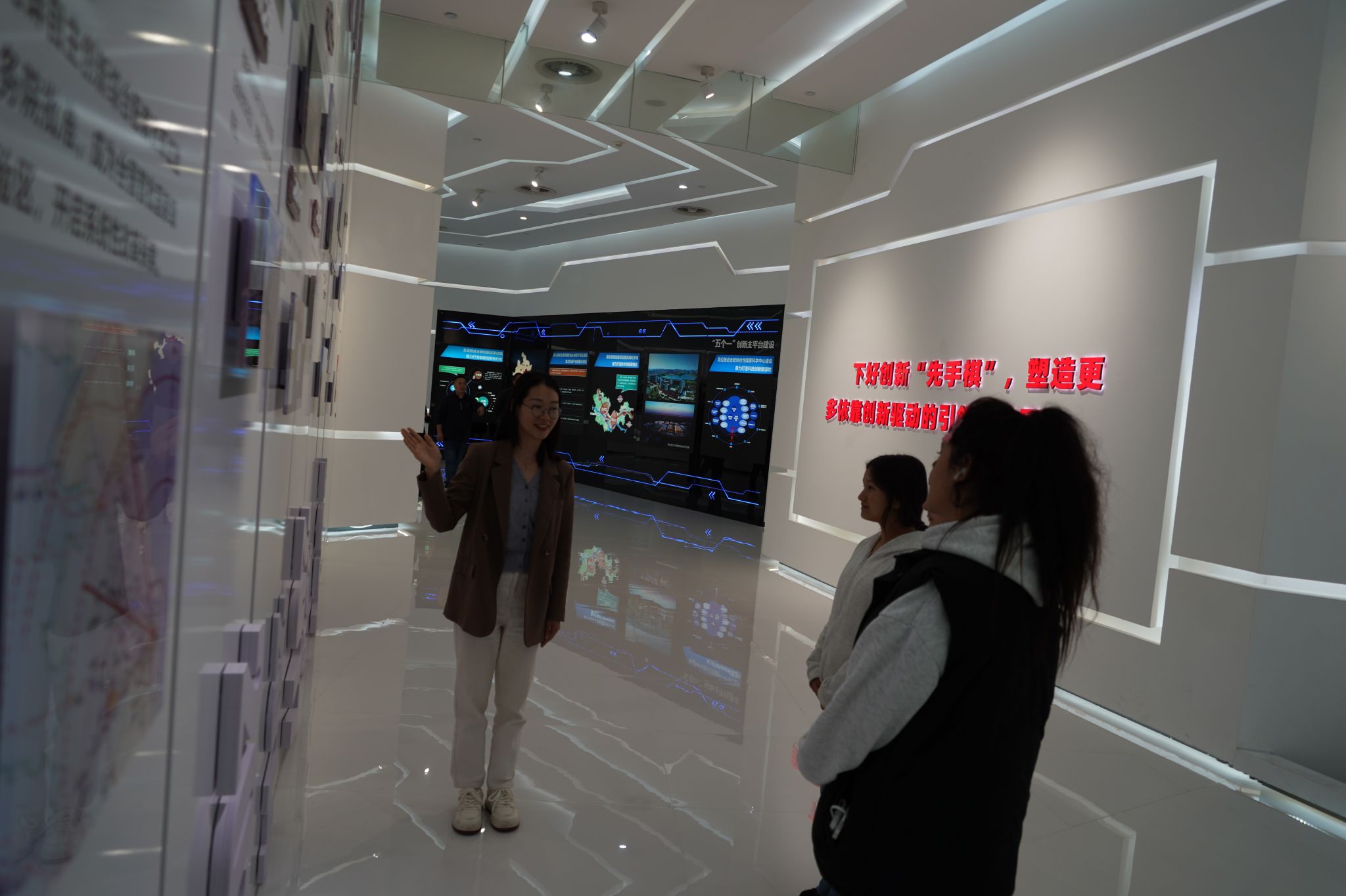 走进安徽创新馆,科技感十足的展陈与安徽创新发展的丰硕成果交相辉映。汪婷婷老师结合场馆内的量子通信、人工智能、新能源汽车等前沿科技展品,梳理了安徽从“科教大省”到“创新强省”的跨越之路。“从合肥综合性国家科学中心建设到新能源汽车产业领跑全国,安徽的创新发展实践,正是党的二十届四中全会提出‘坚持创新驱动发展’的生动缩影。”